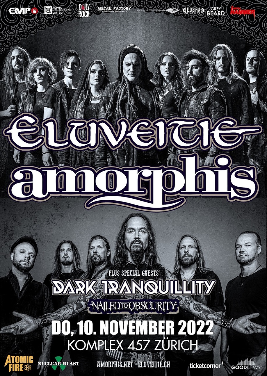 Car quand on commence par dévoiler un co-headlining avec Eluveitie en ses terres et les finlandais d’Amorphis, c’est déjà très bien, mais en plus la soirée démarrera avec en spécial guest Nailed to Obscurity et Dark Tranquillity, rien que ça !
