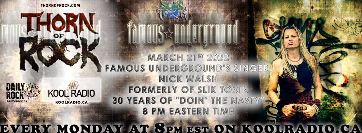 Pour célébrer le 30e anniversaire de « Doin’ the nasty », l’émission de radio « Thorn of ROCK » en collaboration avec « Daily Rock Québec » a reçu avec plaisir le chanteur de Slik Toxik, Nick Walsh.