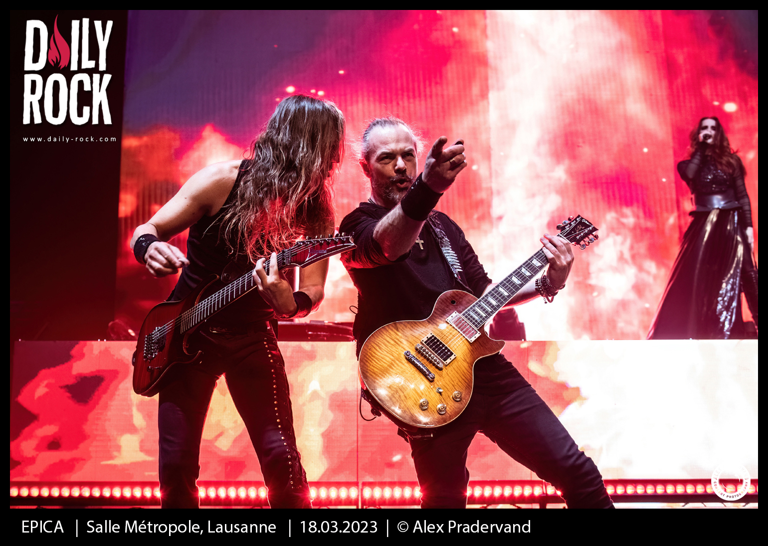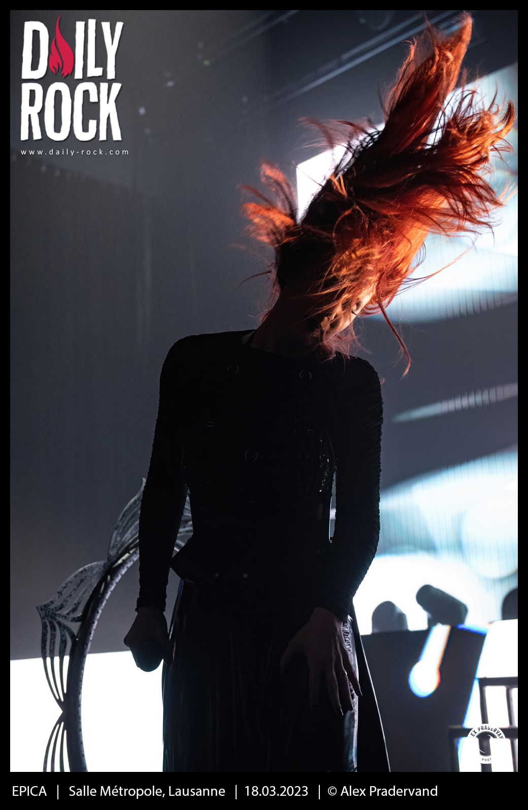 Bien sûr, on a eu droit au grand classique d’Epica, « Cry For The Moon » et même si ce n’était pas vraiment nécessaire, Simone Simons nous explique avant le morceau que l’on doit chanter le refrain (« Forever. And Ever »). Pour les sous-doués, ce sera même écrit en gros en arrière-fond, mode karaoké. Pas d’excuse donc, tout le monde s’exécute. Paraît que l’on était plus chauds que les zurichois la veille (et, on n’en doute pas, sûrement moins que le public de la prochaine date, c’est le jeu).