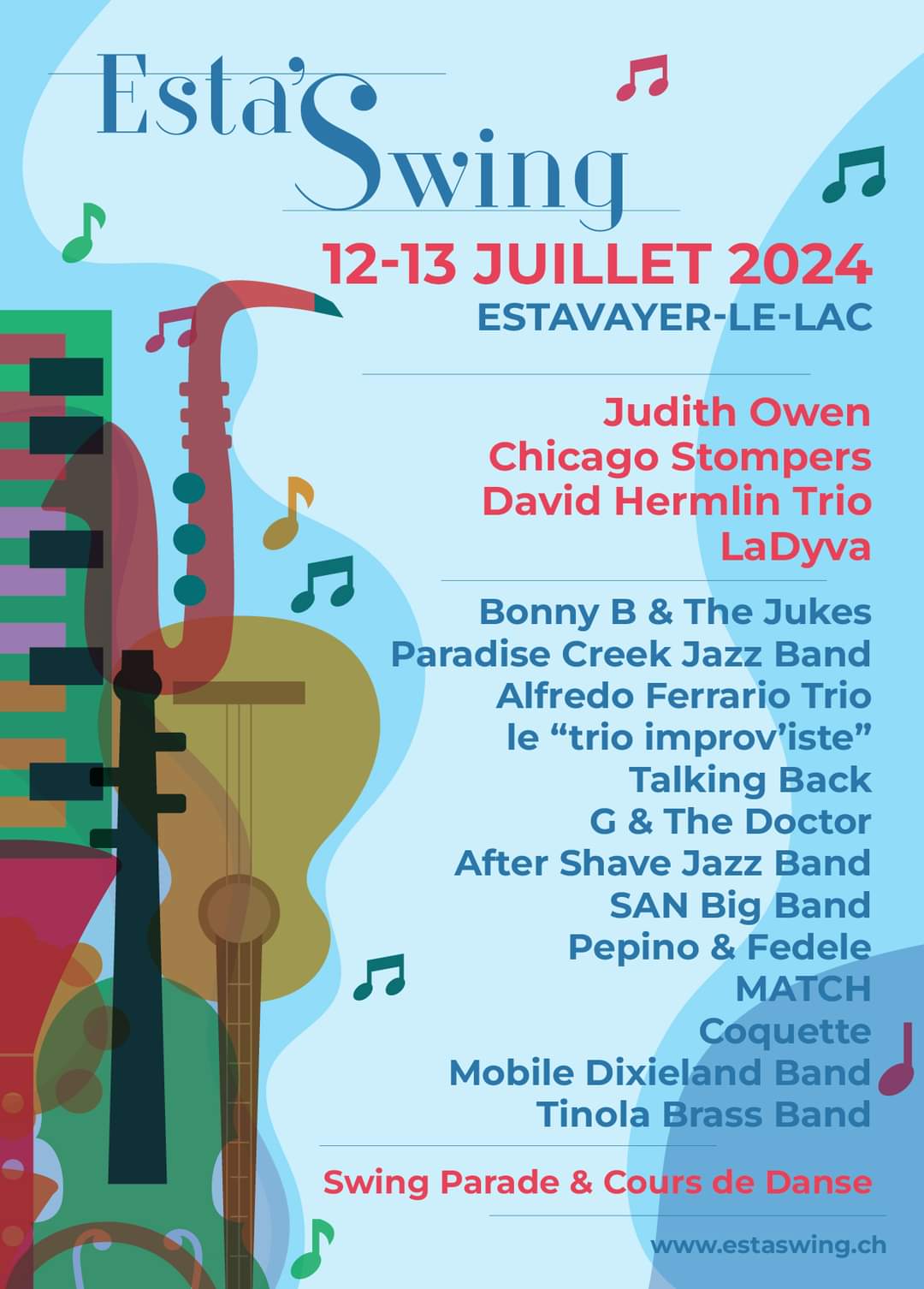 Envie de swinger, direction Estavayer les 12 et 13 juillet pour la deuxième édition d’Esta’Swing. On pourra découvrir une vingtaine de concert pendant ces 2 soirs de festival, avec du Blues, du Jazz et bien évidemment du Swing.