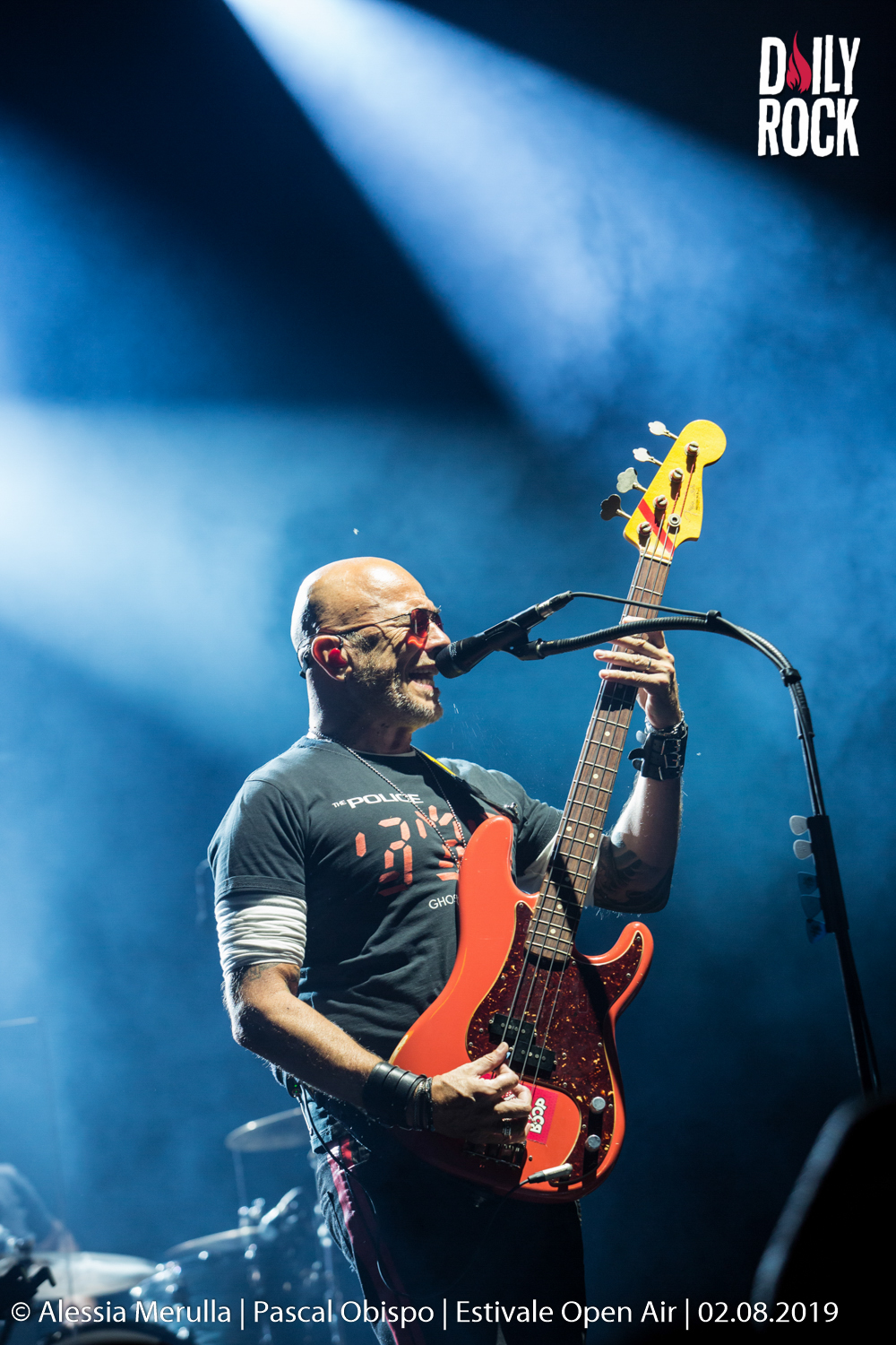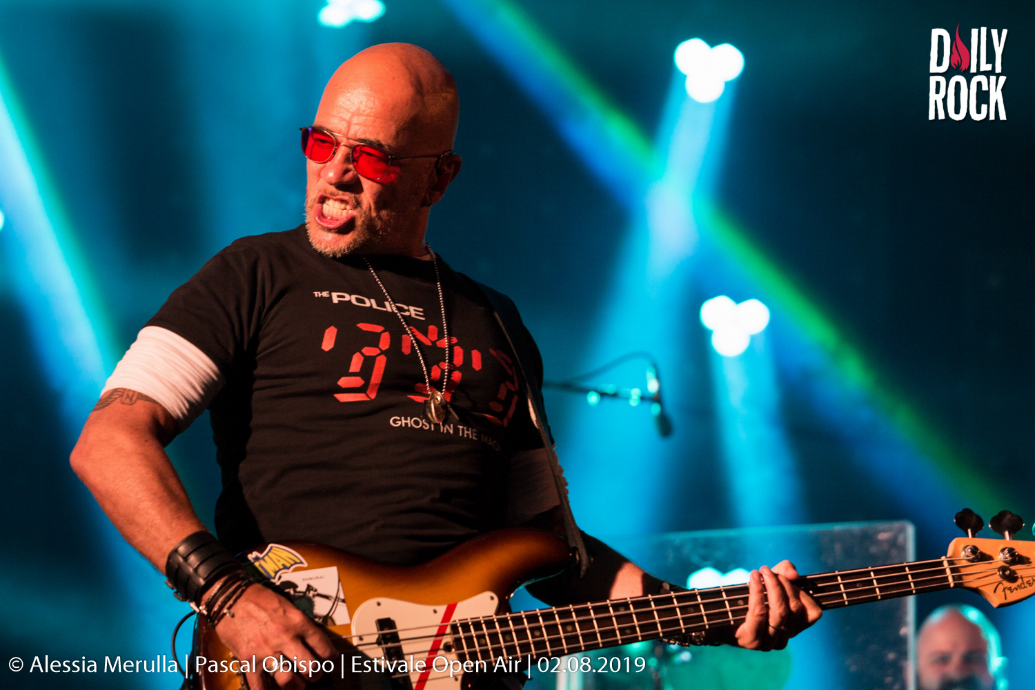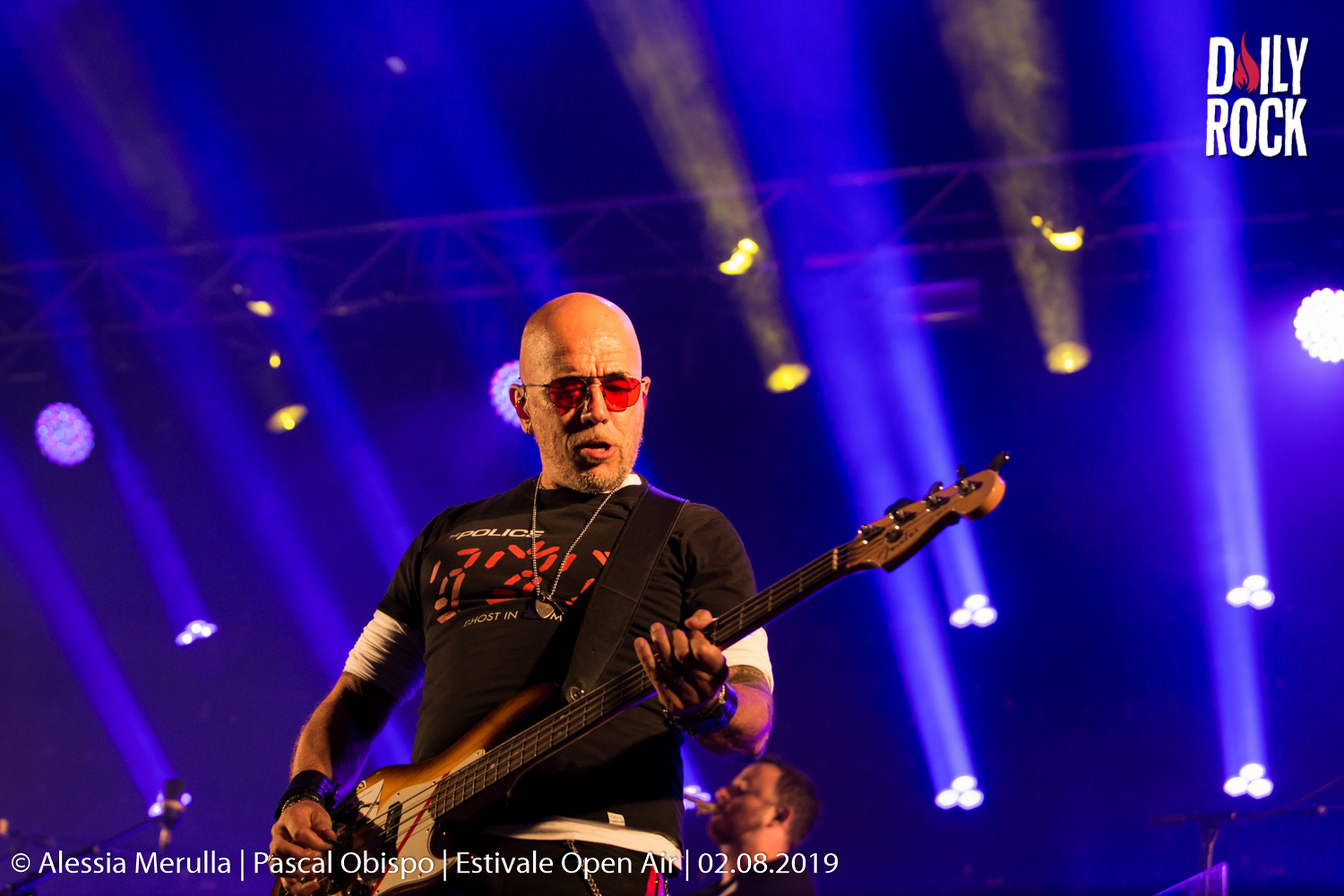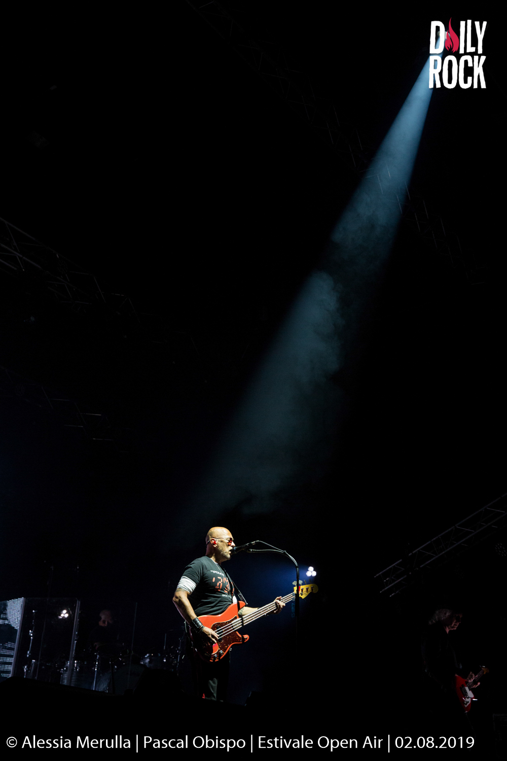 Au cas où ça n’a pas été mentionné plus haut, il est temps de préciser que pour cette troisième soirée d’Estivale, le public était très majoritairement féminin. Et celui que ces dames attendent toutes impatiemment depuis 18h, c’est bien sûr Pascal Obispo. Basse à la Calogero et lunettes rouges à la Bono, le Captain Samouraï Flower a amené son nouvel album, Obispo, à Estavayer-Le-Lac, mais pas que ! Pendant un peu plus d’une heure, il a lui aussi enchaîné les hits, que ce soit les siens ou ceux qu’il a écrits pour d’autres artistes. Ce sera d’ailleurs le seul point faible du concert. Le nombre de titres n’ayant pas été originellement interprétés par Obispo était un tantinet élevé vu la durée du concert. Ça nous aura tout de même fait une séquence blindtest ! Outre le set, c’est un Pascal Obispo au top de sa forme, surtout vocalement, qui s’est présenté devant le public de l’Estivale.
