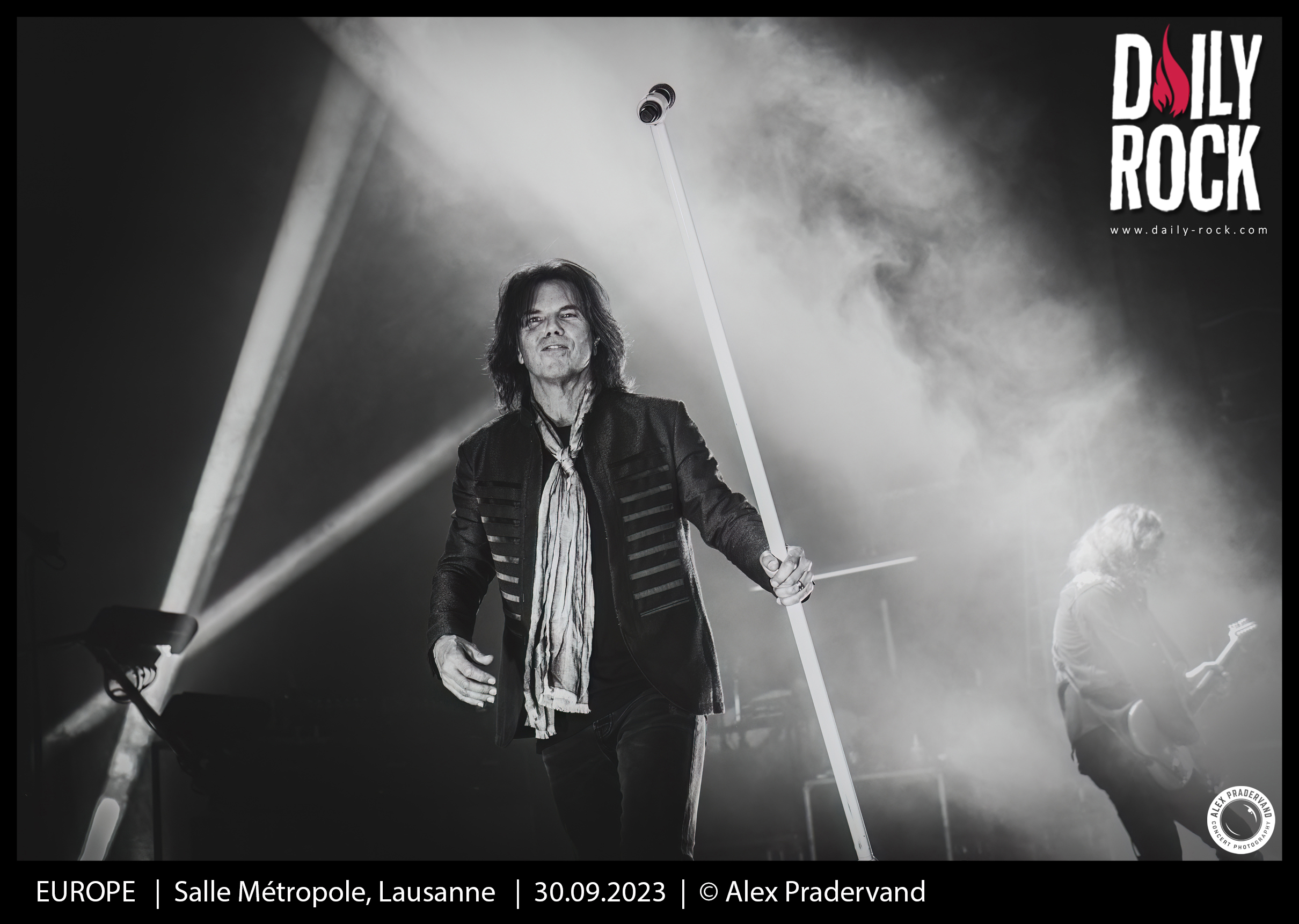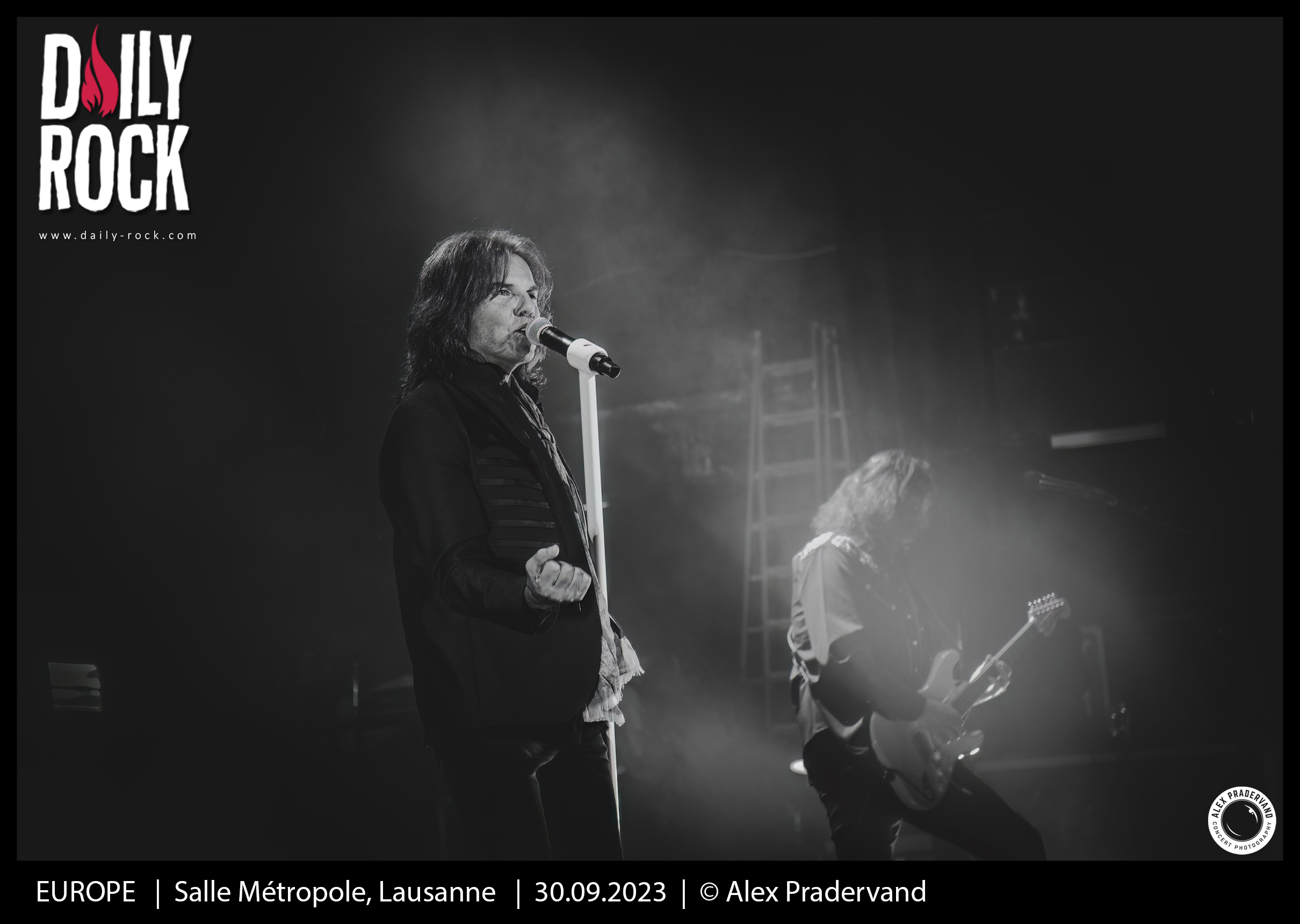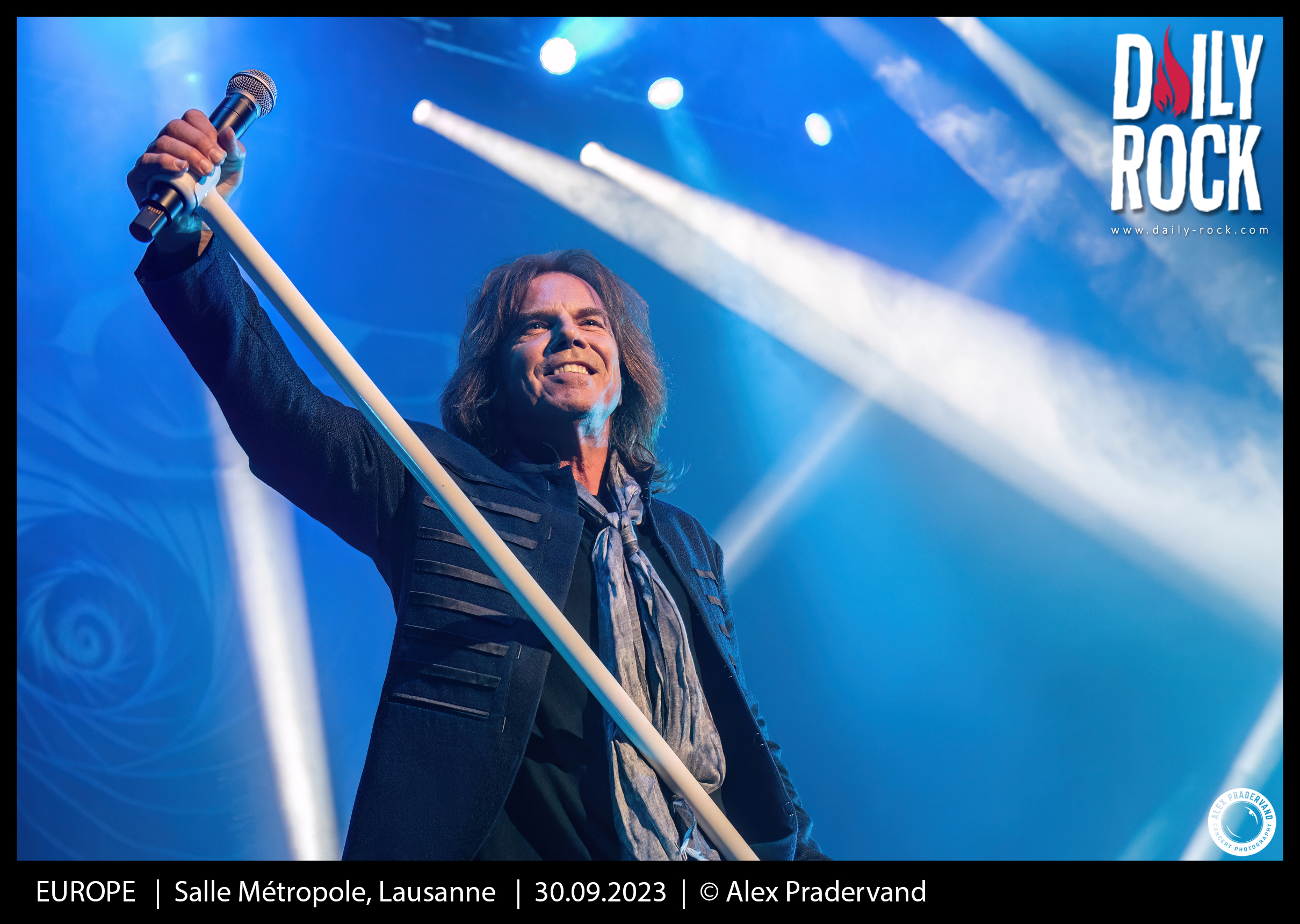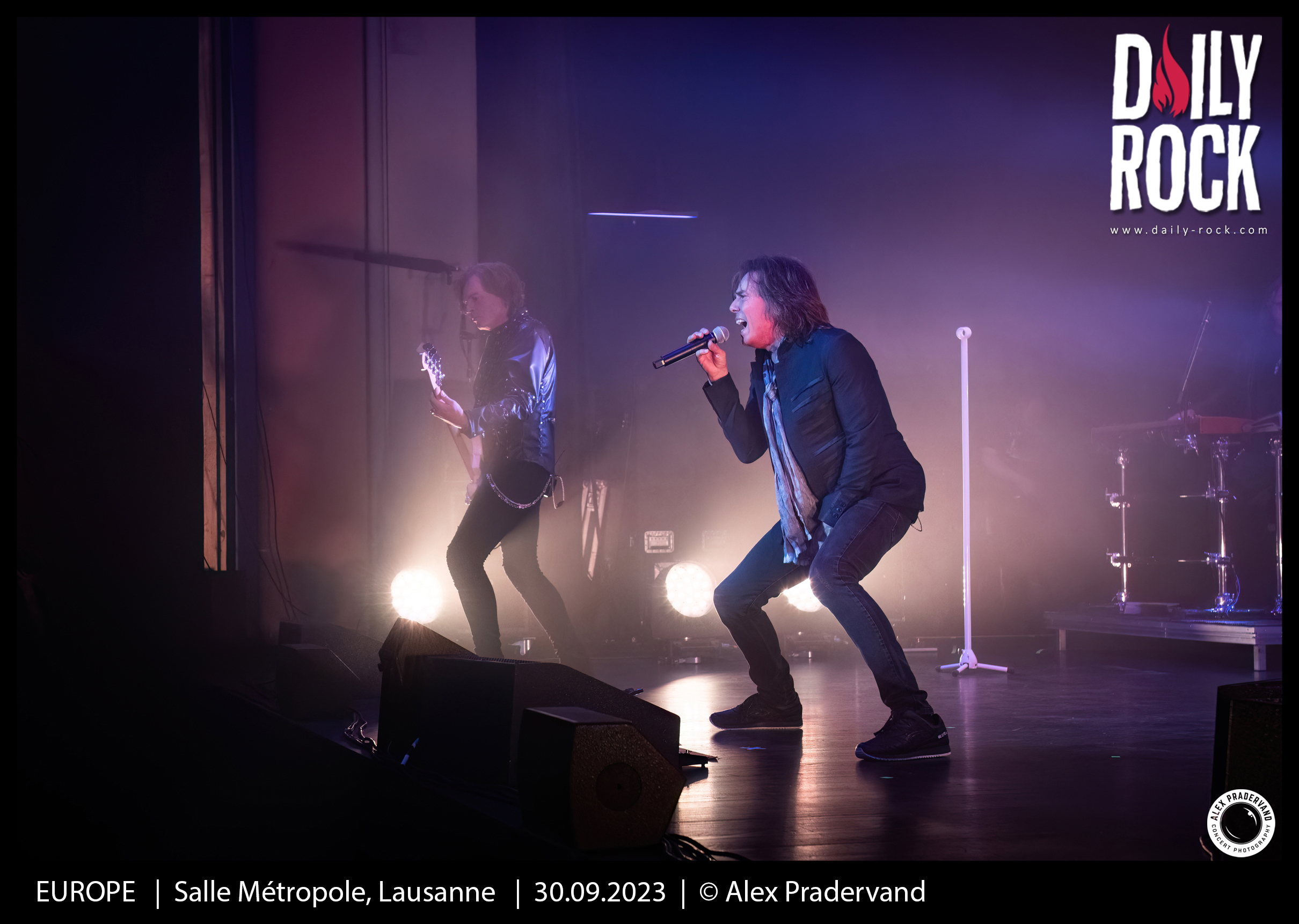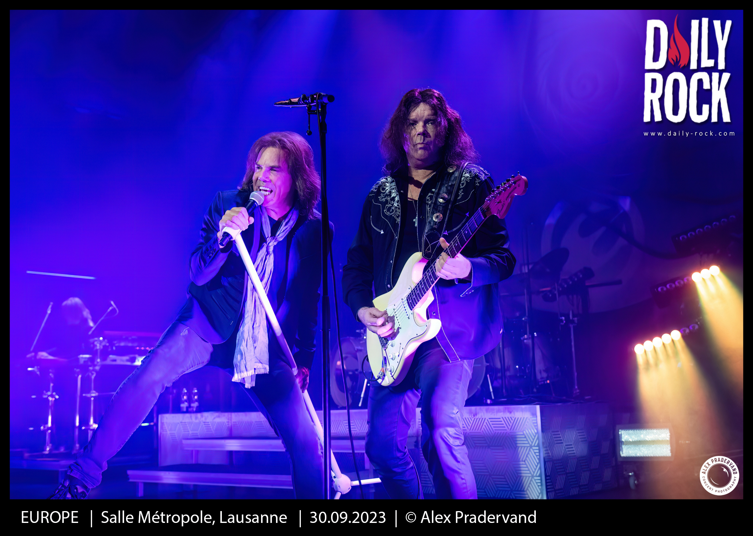 Samedi soir, Europe lançait à Lausanne son Time Capsule Tour, une tournée européenne d’une vingtaine de dates afin de célébrer 40 ans de carrière. Il fait encore chaud en cette fin de journée quand la foule commence à se rassembler sur le trottoir qui longe la Salle Métropole et surtout à se photographier devant l’énorme nightliner floqué du logo du groupe. Cerise sur le gâteau, la date est complète, comme celle de Zurich le lendemain, jolie preuve d’amour du public suisse pour ses suédois préférés.