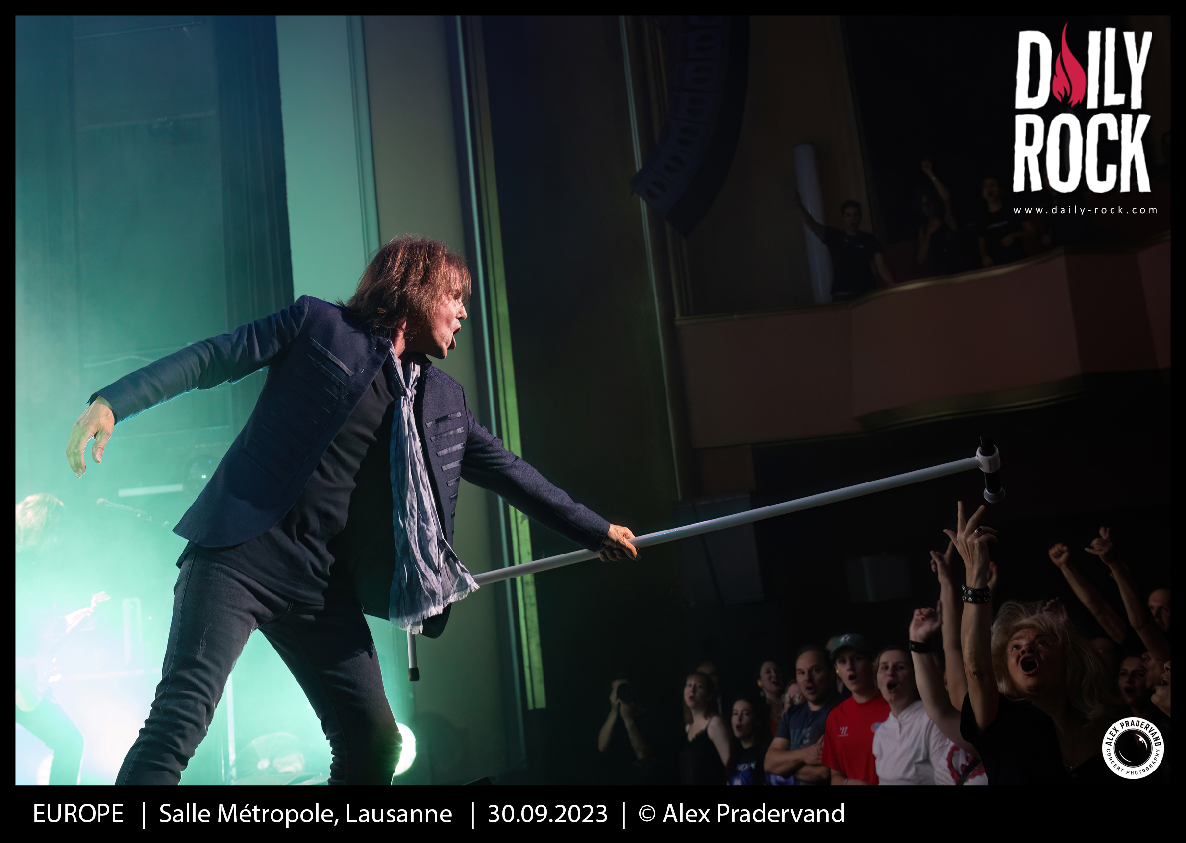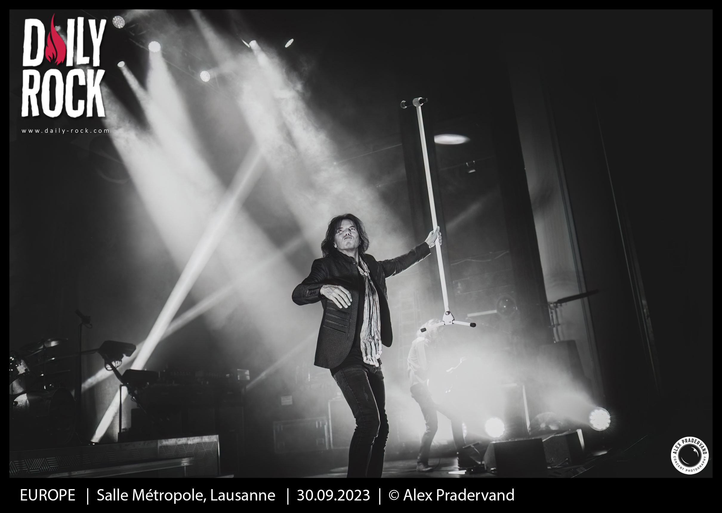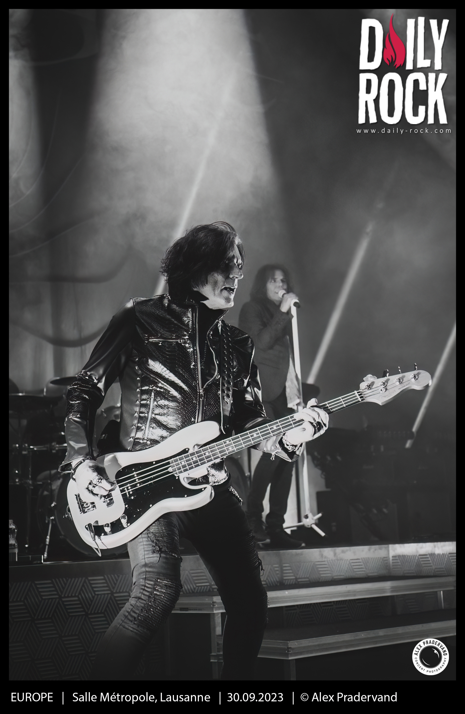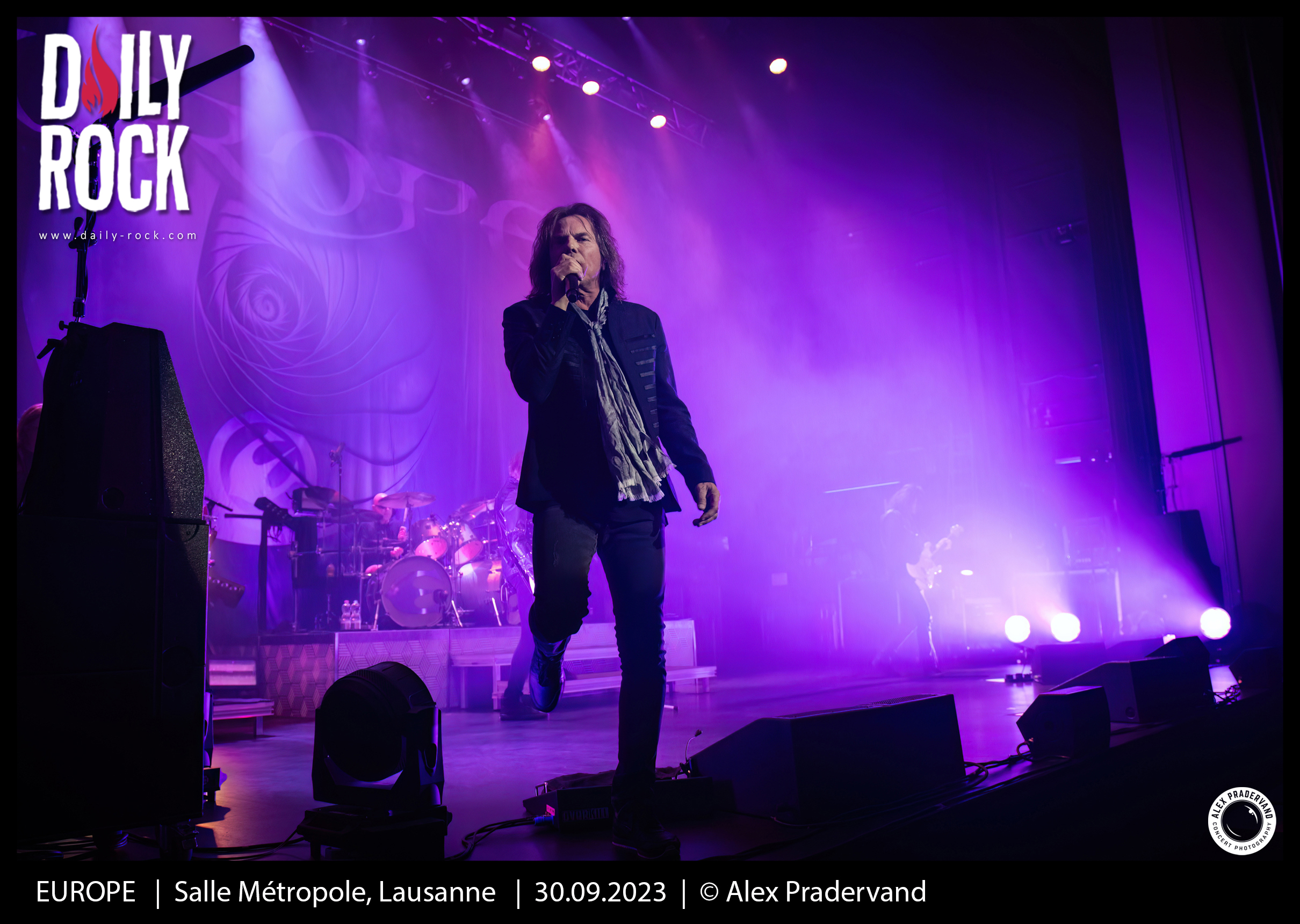 Samedi soir, Europe lançait à Lausanne son Time Capsule Tour, une tournée européenne d’une vingtaine de dates afin de célébrer 40 ans de carrière. Il fait encore chaud en cette fin de journée quand la foule commence à se rassembler sur le trottoir qui longe la Salle Métropole et surtout à se photographier devant l’énorme nightliner floqué du logo du groupe. Cerise sur le gâteau, la date est complète, comme celle de Zurich le lendemain, jolie preuve d’amour du public suisse pour ses suédois préférés.