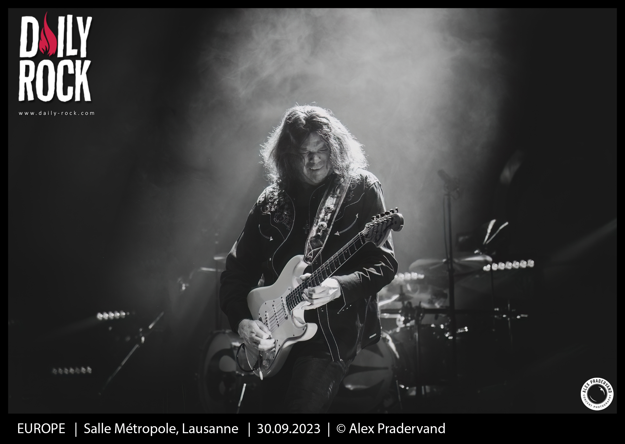 Sans transition, le rideau tombe et le show démarre avec On Broken Wings, Seven Doors Hotel puis Rock The Night. Joey Tempest n’a pas besoin de tour de chauffe, il est impressionnant dès les premières minutes. Sa voix a bien vieilli et ils tiennent tous la forme. Nous avons droit à la toute première version live de Hold Your Head Up, sortie juste avant le weekend. Ce titre est clairement plus rock que les premiers morceaux joués ce soir et cela passe magnifiquement bien. L’autre moment magique de ce premier set, c’est Vasatan, un instrumental joué d’une main de maître par John Norum, qui se rapproche comme personne du niveau de David Gilmour. J’avais oublié à quel point il excelle avec une guitare. Même si le son de sa gratte n’était pas toujours optimal, son jeu en revanche est vraiment Ouf of this world.
