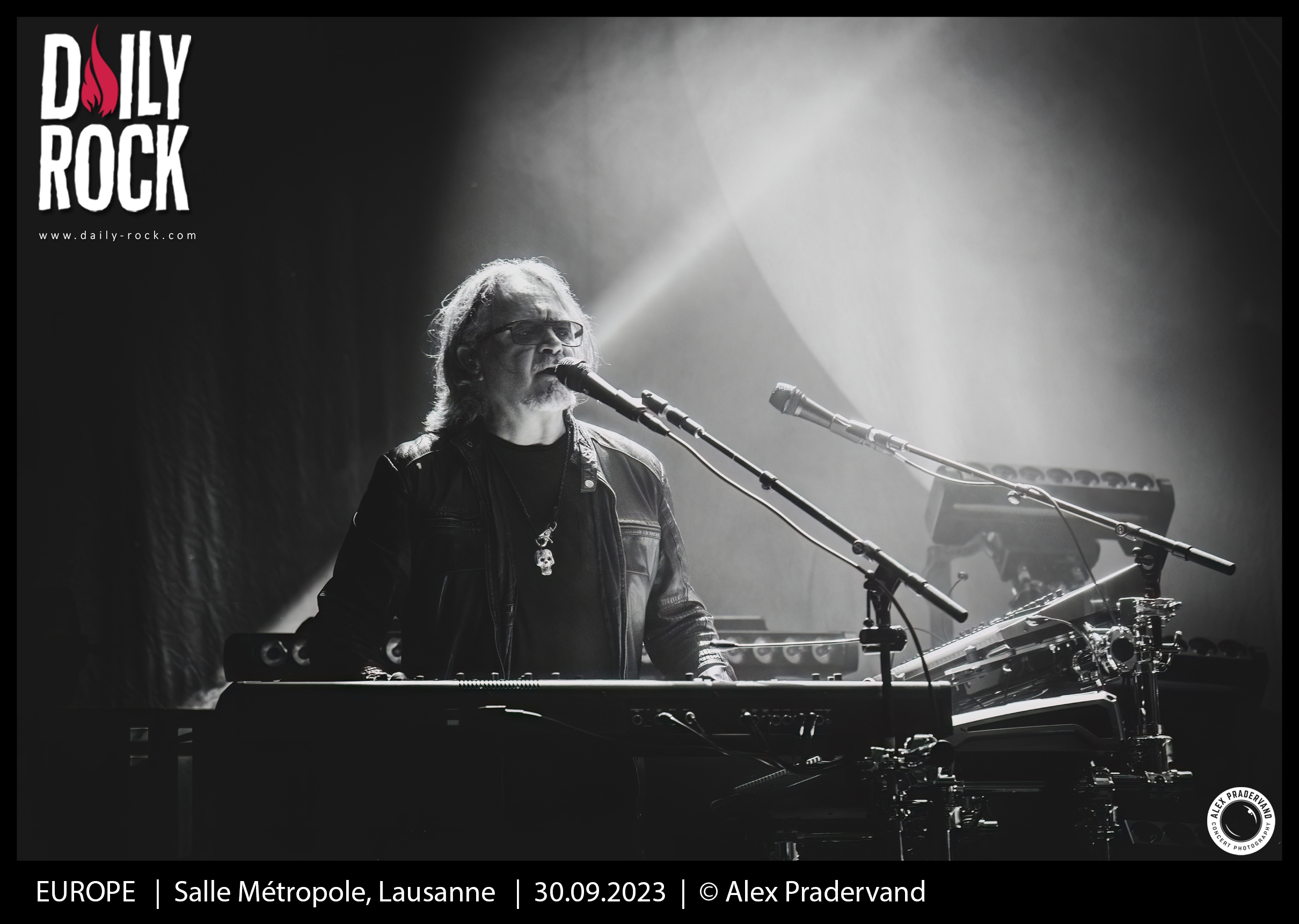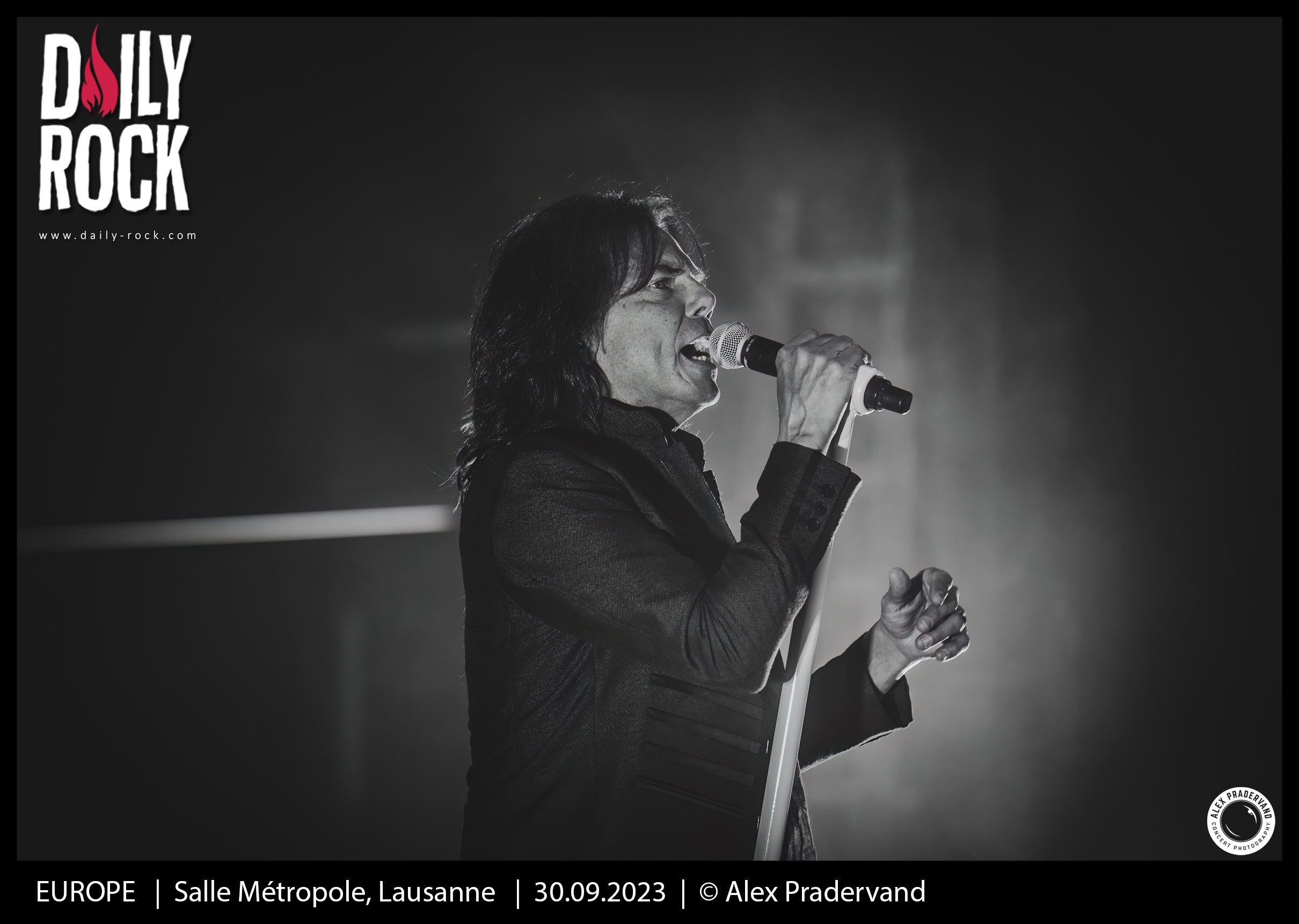 Cela commence directement avec Europe, pas de première partie, mais en contrepartie, le concert est annoncé en deux actes et va a priori déjà bien remplir la soirée. Un grand rideau blanc cache la scène et des images d’un documentaire sur Europe y sont projetées pendant 15 minutes. Videos d’archives, extraits d’interview et anecdotes sympas nous font revivre quelques grands moments dans la carrière du groupe. Le reportage complet promet d’être bien sympa.