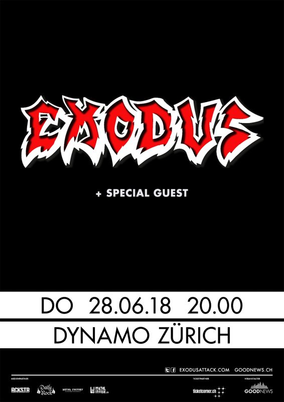 Les fans des pionniers du thrash metal de la Bay Area vont être ravis : le groupe sera de nouveau en tournée en 2018 et reviendra en terre helvétique ! Exodus toujours aussi enthousiaste et dynamique passera par la Dynamo de Zurich le jeudi 28 juin 2018.