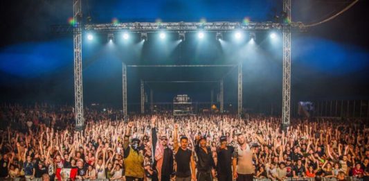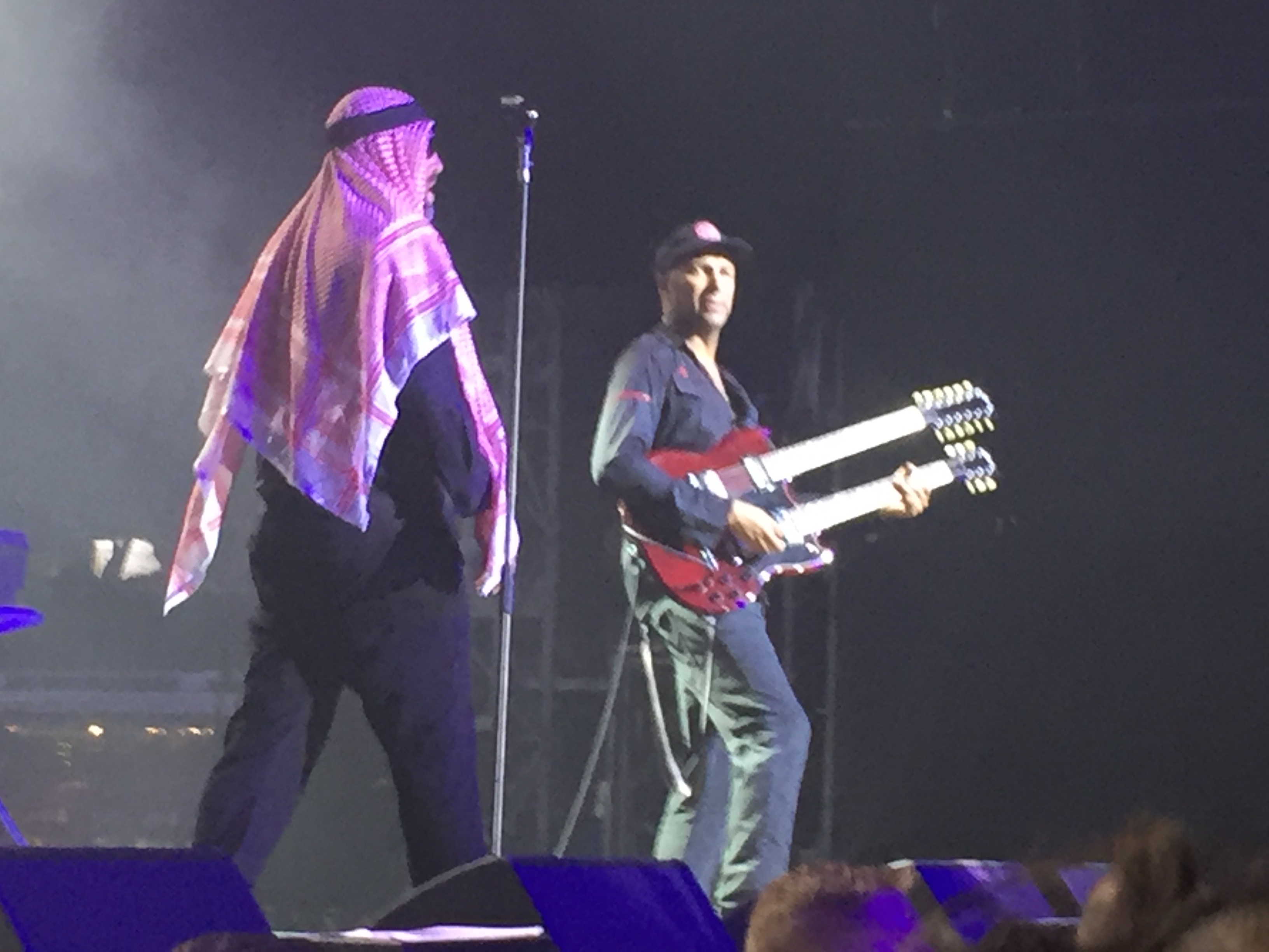 Énorme ambiance sous le chapiteau durant les une heure trente de riffs de Tom Morello et de beats ravageurs des chanteurs de Public Enemy et Cypress Hill !