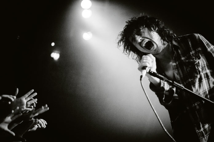 Lundi soir. La semaine a à peine commencé que le plafond culminant à des dizaines de mètres au-dessus de nos têtes se retrouve empli de sueur prête à s’écraser sur notre front. Notre curiosité journalistique se met à palpiter: ‘I was told they were mental’ (‘on m’a dit qu’ils étaient cinglés’) me confie un collègue photographe et compagnon d’infortune avant d’accéder au-devant des barrières, au plus près des sécu peu avenants censés contenir les ardeurs libidineuses d’un O2 Academy plein à craquer.