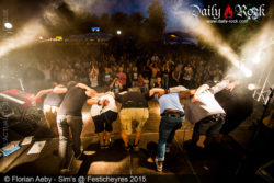 Pour terminer la soirée, retour sur la petite scène avec les métaleux de Camion. Sans mauvais jeu de mot, Camion c’est du lourd! Entre hardcore, blues et stoner, les lausannois ont fait tournoyer les chevelures et autres crinières du Festicheyres. [Florian Aeby]