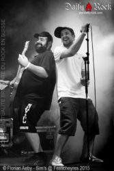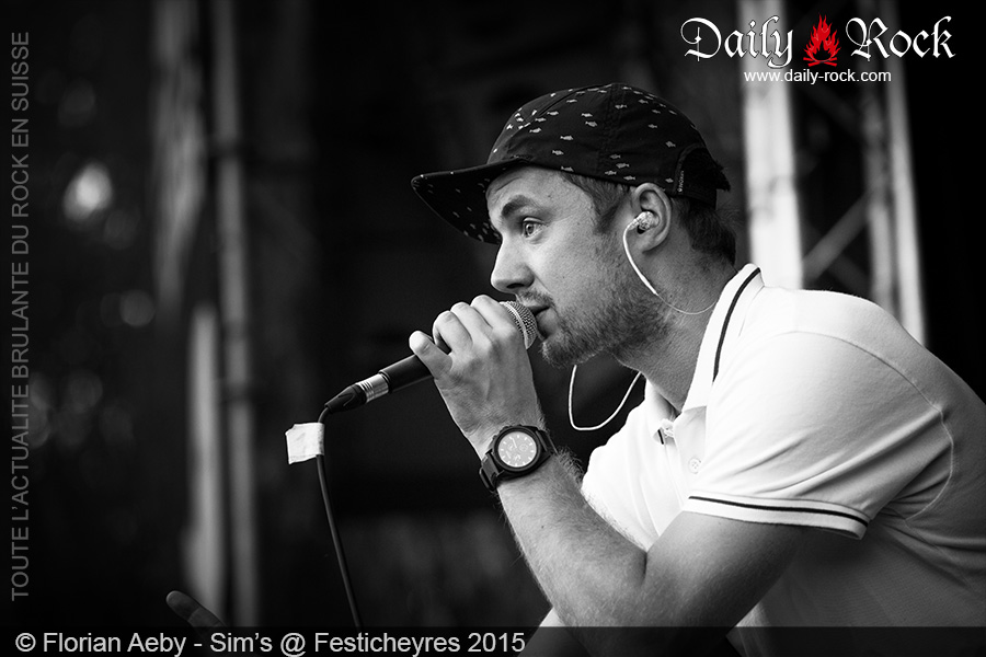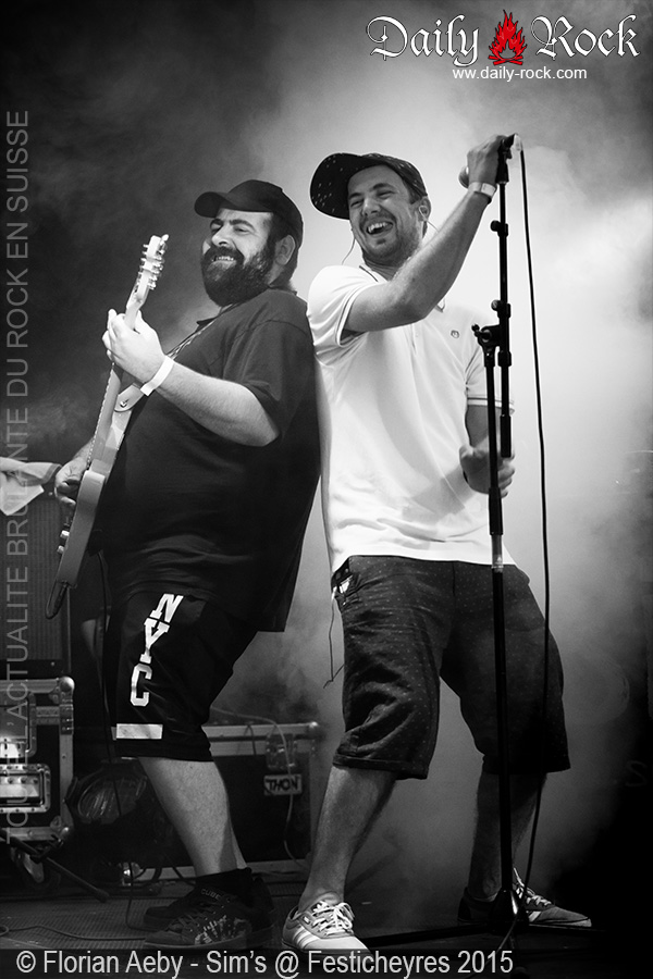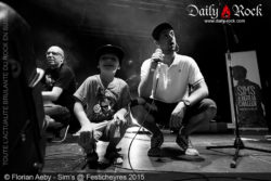 Après avoir fait attention à »bien m’hydrater » donc, départ pour le concert de Sim’s et ses Repentis. Comme à son habitude, Sim’s sait parfaitement aller chercher le public et il ne faut pas longtemps pour que toute l’assemblée reprenne en chœur « on accélère dans l’impasse » un des titres phares de l’artiste jurassien. Puis le concert devient un peu fou, public dansant puis breakant sur scène, enfants au micro de Sim’s, bref. L’ambiance est excellente et les musiciens jouent le jeu à fond!
