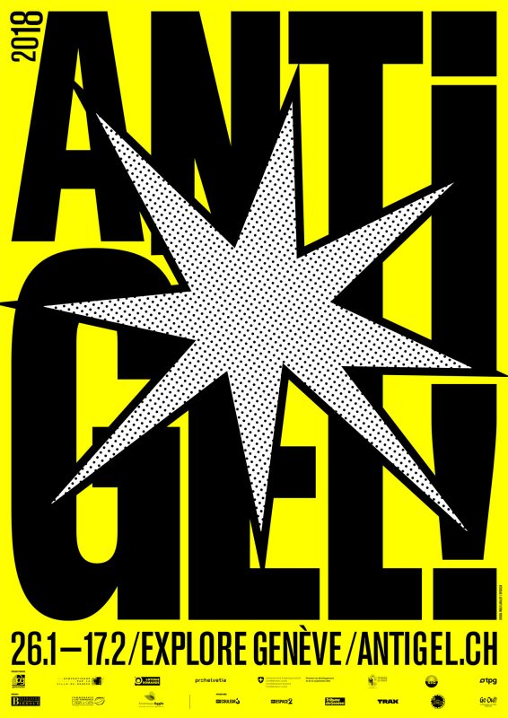 À l’image de l’affiche 2018 ponctuée d’un point d’exclamation, comme un slogan, Antigel affirme sa singularité et continue d’ouvrir des portes, d’investir des lieux éphémères, de créer du lien et de proposer une programmation sans compromis en mélangeant musique, danse, performances, sport, découvertes, fêtes, clubbing et créations Made In Antigel. Innover, repousser les limites et les frontières. Depuis 2011, Antigel fait rayonner l’audace artistique et étend la culture à toute une région en invitant son public à sortir de sa zone de confort en plein hiver pour partir à l’exploration d’un canton en constante évolution. Soutien indispensable du festival mais aussi source d’inspiration inépuisable pour les projets, les communes genevoises représentent la richesse du festival. À l’heure où les enjeux de Genève sur le plan de l’urbanisme sont importants, Antigel agit comme stimulateur pour mettre en lien culture, politique et territoire et veut s’assurer que la culture tienne une place dans cette réflexion.