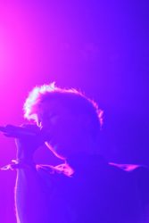 Récitant avec passion, que dis-je, avec acharnement, ces mots, ces flèches, qui transpercent son coeur, rouge de douleur à porter sur ses épaules, un monde étrange, se débattant, hébété, lendemain de cuite, nouveau né, agacé, pleurant pour que l’espoir soit cette étoile dans sa nuit sans ciel ni refuge. Feu! Chatterton tue sans coup de semonce la morosité d’un rock français stéréotypé et cantonné à se simplifier la vie dans une langue anglaise futile, et il revigore une vivace langue de Molière, affutée comme des couteaux pour trancher dans les esprits des parcelles de tendresse, de surprise, de nostalgie, d’espoir. Feu! Chatterton émerveille les foules, venues en nombre, pour se laisser conter leur quotidien avec poésie par les mimiques fugaces de leur chanteur, porté par un rock électrisant.