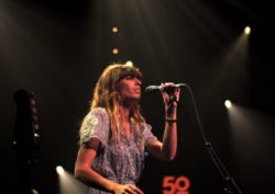 Puis Lou Doillon, contraste saisissant et douceur de vivre empreinte de nostalgie. Elle paraissait pourtant bien fade après une telle décharge d’énergie. La musique est belle, certes, sa voix particulière est tout ce qu’il y a de plus charmant, mais sa musique pêche par sa simplicité. Extrêmement répétitive : même style de guitare, même façon de chanter presque chacune de ses chansons, elle reste crochée dans son style confortable sans oser / vouloir aller plus loin. Elle joue à la chanteuse, avec bonne humeur, gentillesse et nulle doute qu’elle ait satisfait ses fans, mais elle a ramollit quelque peu ceux venus pour la tête d’affiche. Mais comme on dit, le calme avant la tempête…