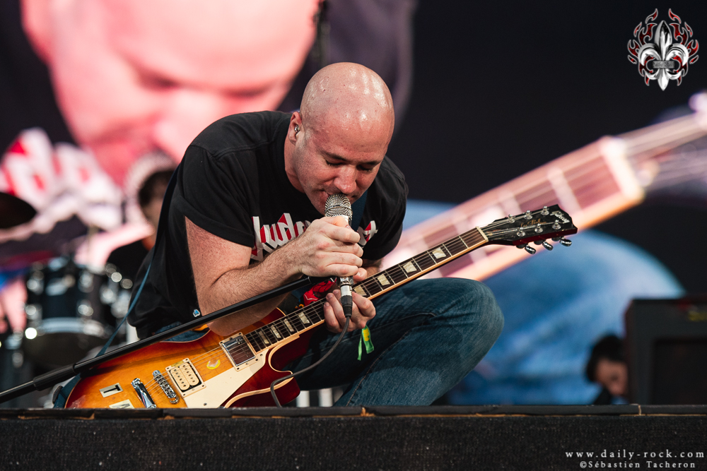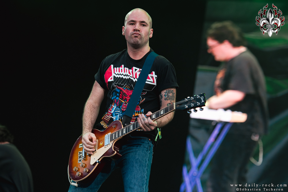 Le chanteur n’a pas manqué de nous rappeler à la blague qu’il ne pourra jamais oublier le F.E.Q. se remémorant le soir de juillet 2015 alors qu’il voyait avancer vers lui l’orage et les éclairs. Et moi regardant tout cela assis dans mon FUCKING trône de métal a-t-il mentionné!
