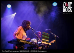 Duo de guitares métalliques rutilantes sous les spots avec The Two