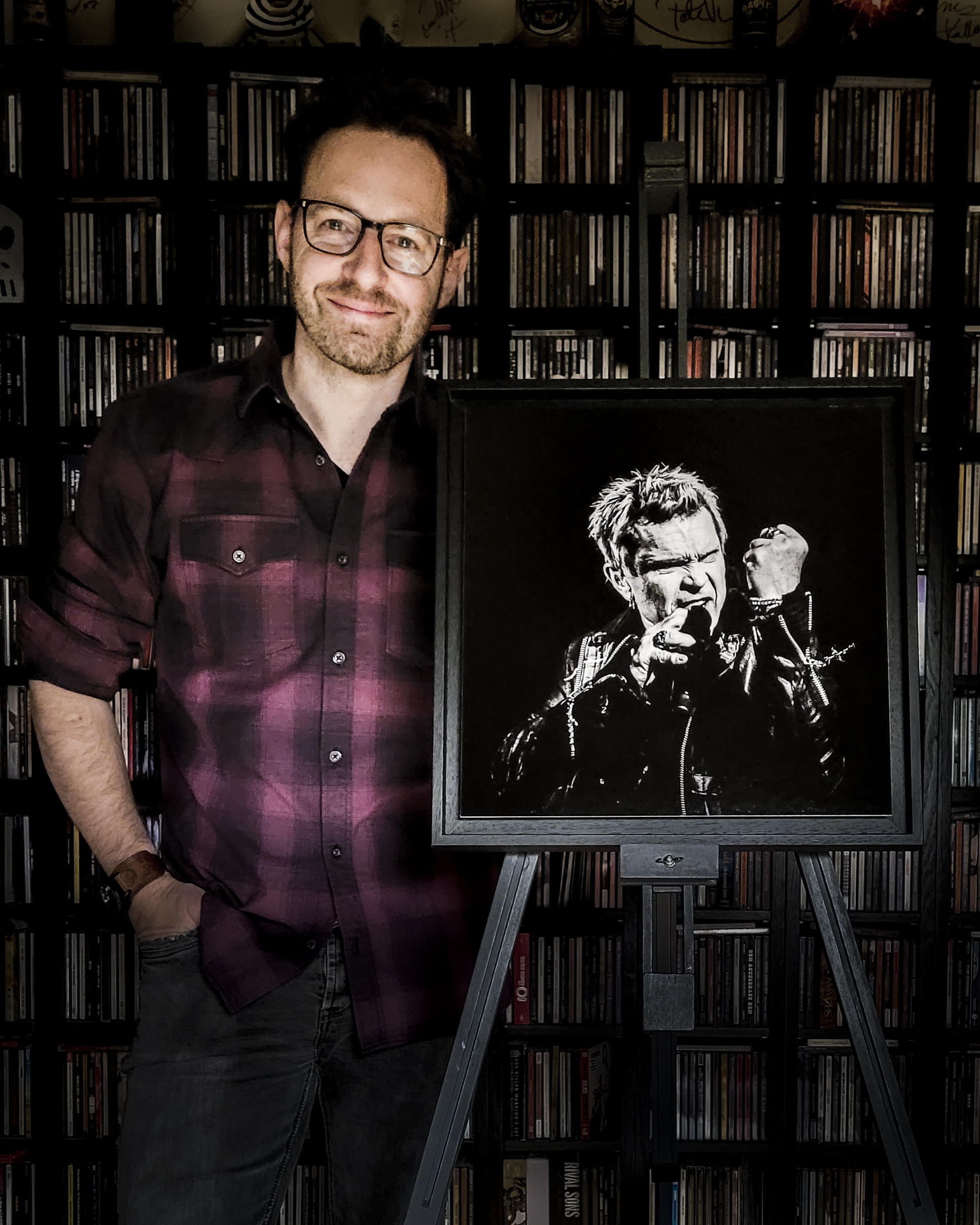 Aujourd’hui, pour la première fois, il présente ses photos dans le cadre d’une exposition. Celle-ci a ouvert ses portes le 31 mai 2021 aux Boucaniers, un « pub gastronomique » de Lausanne. Ce sont ainsi 19 photos qui sont exposées, imprimées dans des tailles allant de 30×40 cm jusqu’à la plus grande, celle d’Angus Young (AC/DC), qui fait… 100×100 cm !