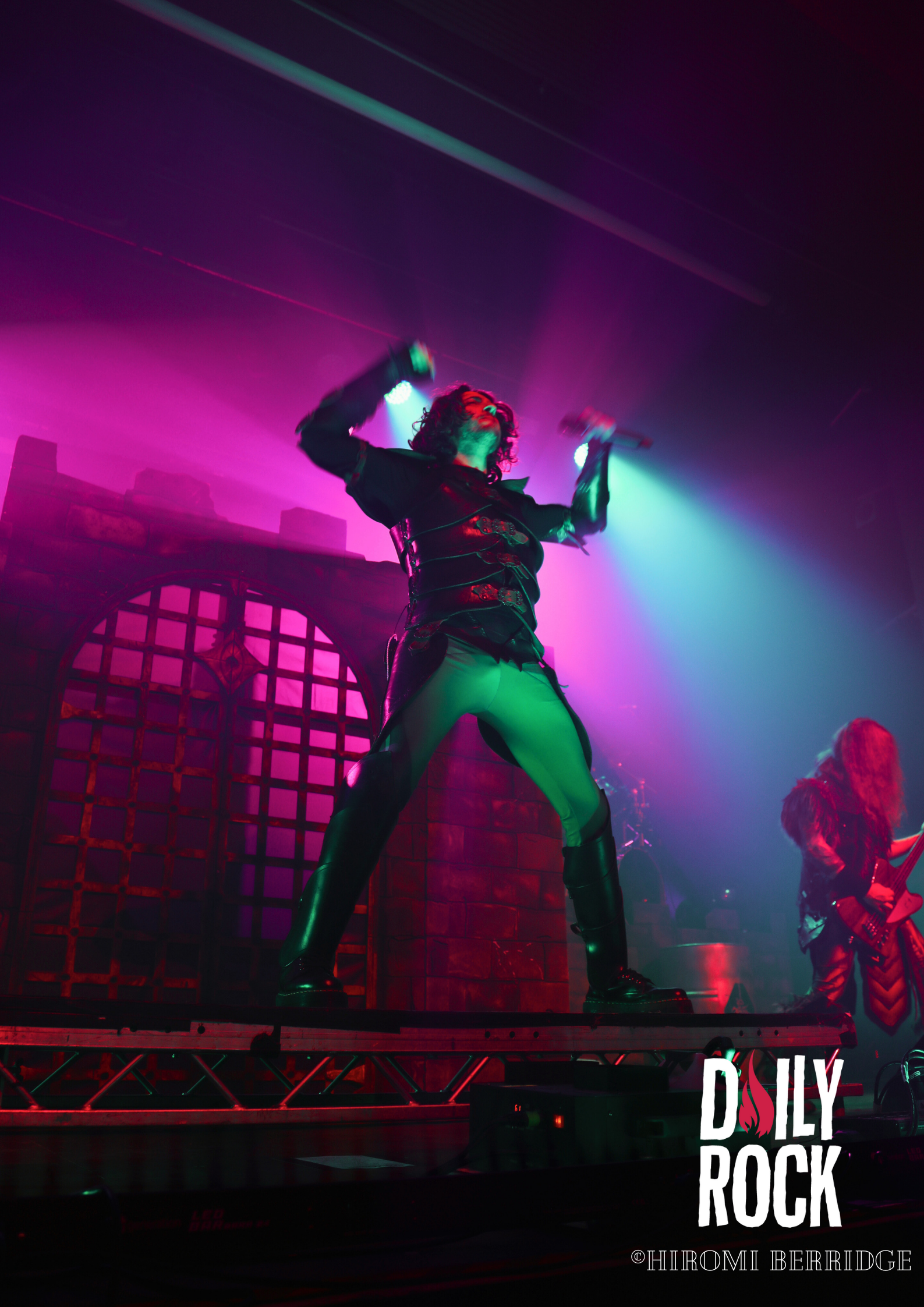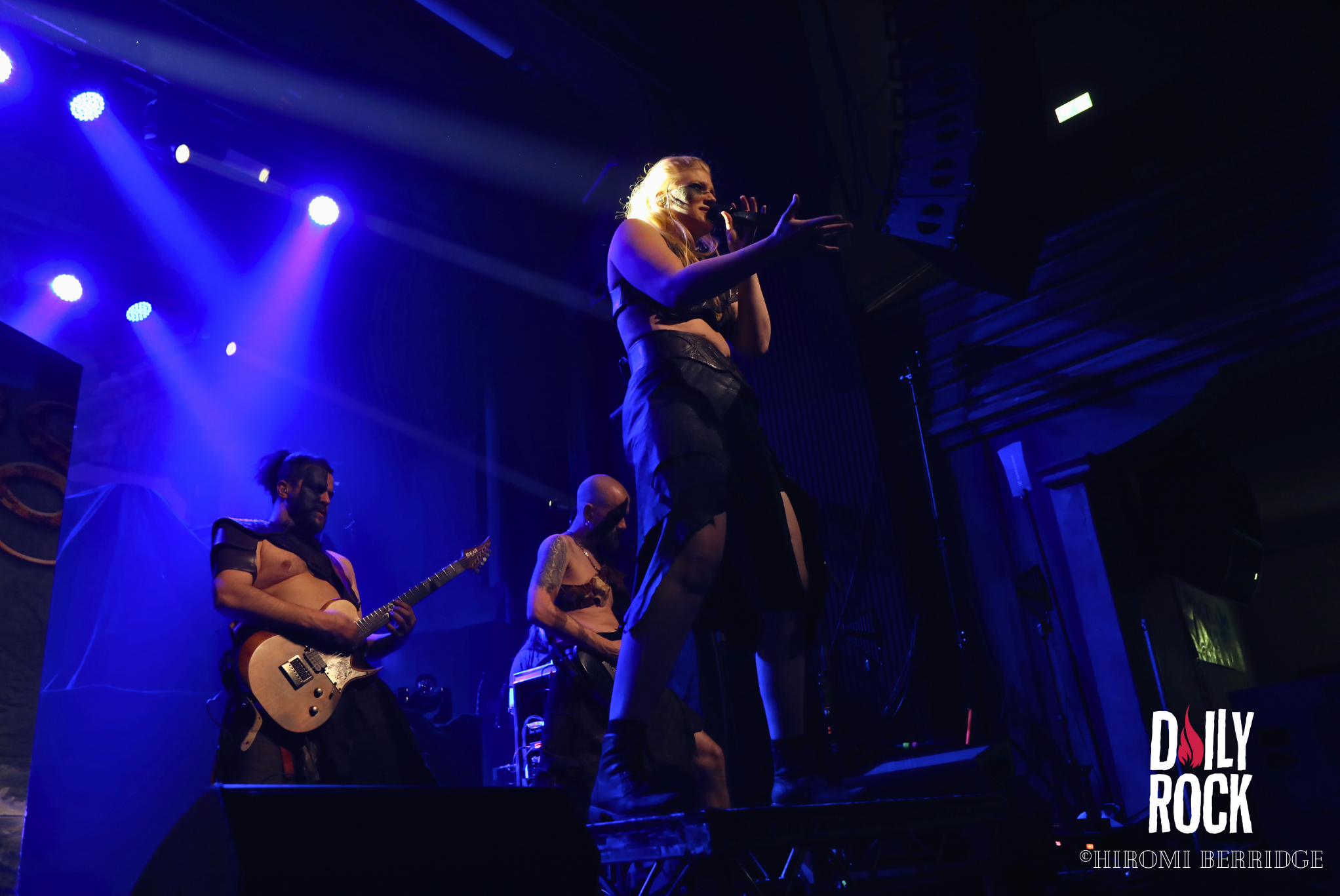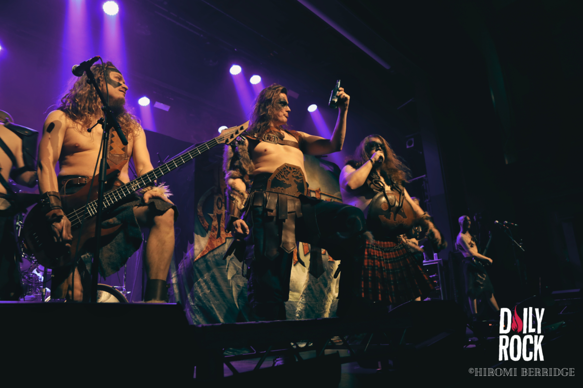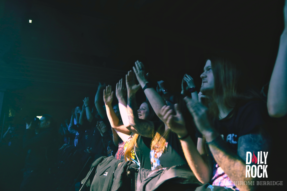 Une fois les lumières éteintes on voit débarquer une troupe de 8 barbares, répondant au nom de Brothers of Metal. Une petite horde, qui domine le peu d’espace qui reste. On se retrouve devant trois guitaristes, deux chanteurs, une chanteuse et bien entendu une base et une batterie (malheureusement caché par le décor depuis mon point de vue…) sur une petite parcelle de scène. Mais ce n’est pas pour autant que l’ambiance ne monte pas crescendo. Les chanteurs savent prendre la place et nous compter leurs histoires venant du Nord. Les guitaristes se passent le relais du rôle de soliste, ce qui permet une jolie occupation de l’espace. Le tout avec un public qui commence déjà à chanter et crier en cœur avec le groupe. On remarque d’ailleurs que ces derniers ne s’attendaient pas à être aussi bien accueilli.