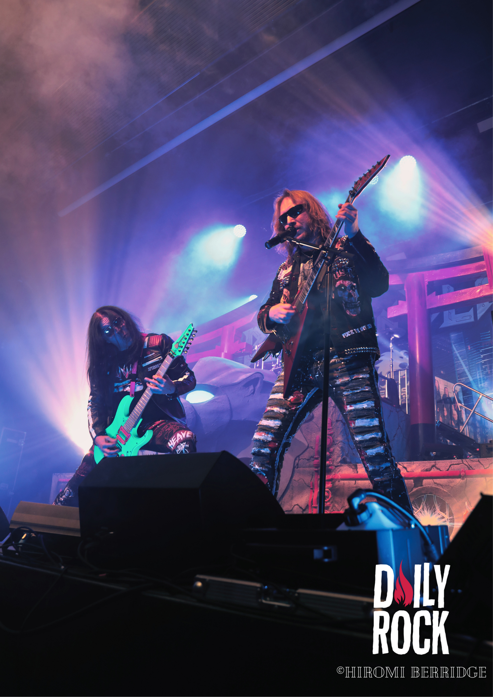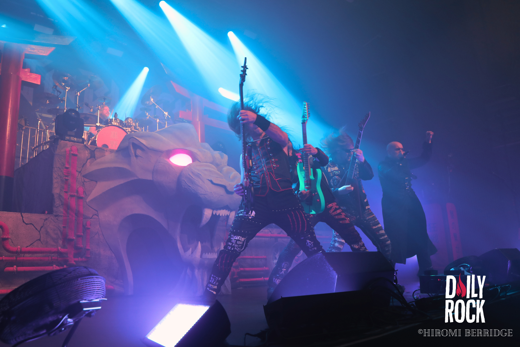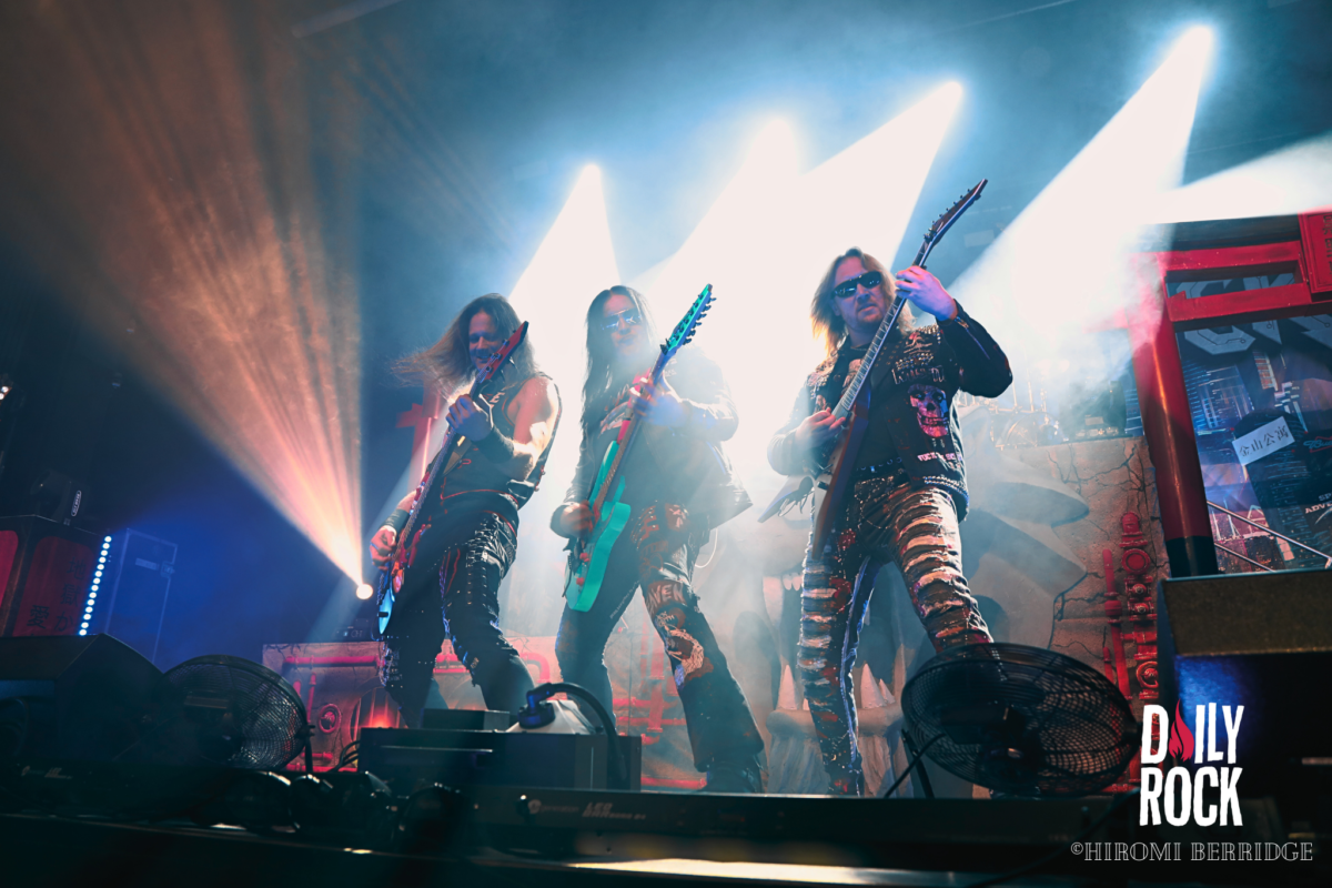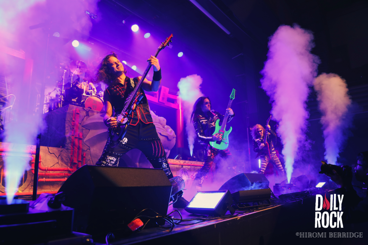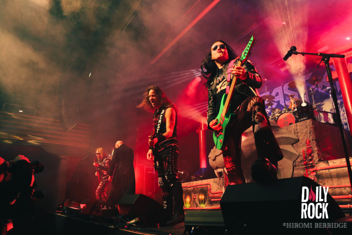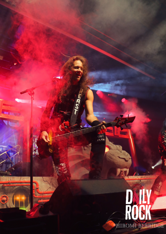 On a l’impression d’avoir assisté au clous du spectacle et pourtant, les techniciens s’activent pour assembler le nouveau décor du dernier groupe de la soirée. On nous dévoile une tête de lion, et on dresse deux Torii de chaque côté de la scène. Les arches rouges japonaises, de rien. Et pour achever la soirée, on passe à Beast in Black. On passe du Valhalla, aux costumes médiévaux cosmiques, à une ambiance glam des groupes des années 80. La fosse se transforme en vrai dancefloor. On peut entendre toute la foule chanter pendant presque tout le concert. On sent que le public était impatient de les voir. Même si on assiste à un concert plus “classique” que le précédent, il faut reconnaître une grande efficacité et une belle énergie des musiciens. Après presque 1h30 de concert, on dit au revoir à tout ce monde et on se dirige vers la sortie et c’est repartie pour 3h de route pour rentrer!