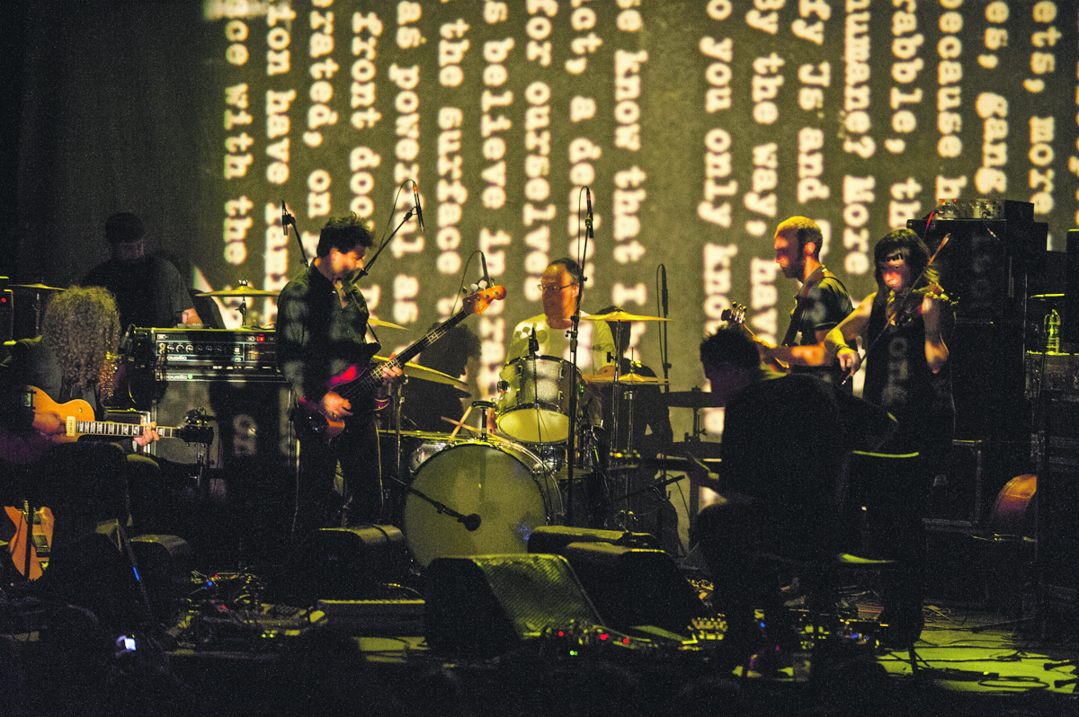 ‘Luciferian Towers’, le nouvel opus des Canadiens du collectif post rock Godspeed You! Black Emperor (GY!BE), sortait il y a quelques semaines. Et pour fêter la venue de ce nouveau bébé, les mystérieux compères se fendent d’une tournée européenne. Comme vous êtes de bons élèves et avez déjà lu l’intitulé de cet article, vous apprendrez sans surprise qu’une halte dans nos contrées fribourgeoises est prévue pour ce mois de novembre. Et si un nouvel album, c’est génial de le découvrir avec son casque audio, ce collectif prend toute son ampleur avec le live. A l’instar du groupe qui l’exécute, un concert de GY!BE n’a rien de conventionnel : une dizaine de musiciens disposés en rond accompagné d’un Vjing dantesque plongent le public en transe grâce à un mélange de drone et de post rock profondément immersif. Préparez votre corde sensible (ainsi que toutes les autres cordes que vous avez à disposition) à vibrer sévèrement, car que ce soit la première fois que vous assistiez à l’un de leur concert ou que vous soyez un-e habitué-e, un concert de GY!BE est une expérience qui ne laisse personne insensible.