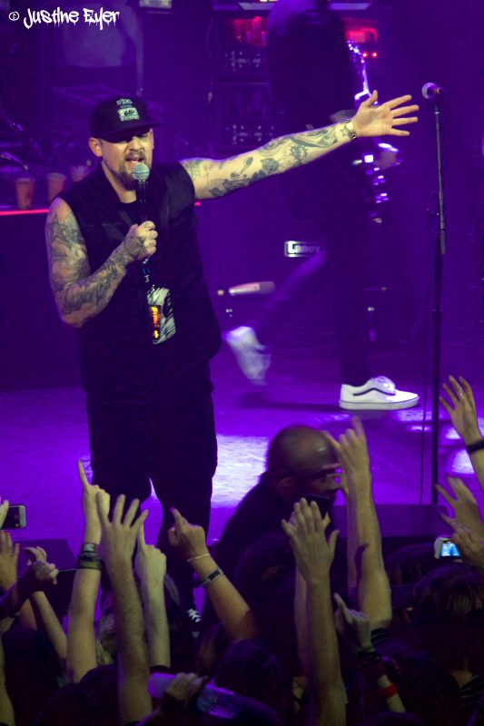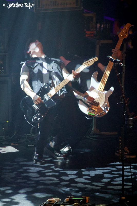 Il n’y a pas une seule syllabe, un seul mot, un seul couplet ni un seul refrain qui n’est pas scandé par un public totalement acquis à la cause de Good Charlotte. Les jumeaux Madden se font manger dans la main et chacune de leurs interventions au micro fait mouche. Comment vous décrire la réaction du public lorsque Joel Madden déclare qu’il voudrait être Français, car cela sonne sexy. Impossible avec des mots ! ‘Girls and Boys’, Life Changes’, ‘Hold On’, il n’y a aucun répit, aucun temps mort ! La température grimpe, et ce n’est pas dû au fait qu’il y a du monde au balcon, mais bien que Good Charlotte chauffe ses fans dans la fosse, telle la merguez empalée sur un bout de bois lors d’un barbecue. Cette fameuse goutte de sueur qui prend source au sommet de la nuque, descend lascivement le long de la colonne vertébrale, et s’arrête dans le creux du dos pour être à même de poursuivre sa dégringolade sur le chemin des abysses de notre corps, là où se trouve la porte de sortie de nos entrailles, cette goutte est bel et bien là. Tout est moite, chaud, intense. On vit, on transpire Good Charlotte ! Le temps est venu pour les jumeaux Madden et ses sbires de regarder dans le rétroviseur. Le dépoussiérage de titres tels que ‘I Just Wanna Live’, ‘The Young and the Hopeless’ n’ont que vocation à provoquer une nouvelle montée en puissance de la folie au sein de l’auditoire. ‘Wall of death’, ‘Circle pit’, ‘Crowdsurfing’, soit autant de titres nécessaires à décrire l’hystérie collective ambiante. Le show est millimétré et exécuté de bout en bout avec classe et maîtrise. On apprécie ! Une heure trente de communion musicale, ni plus ni moins.