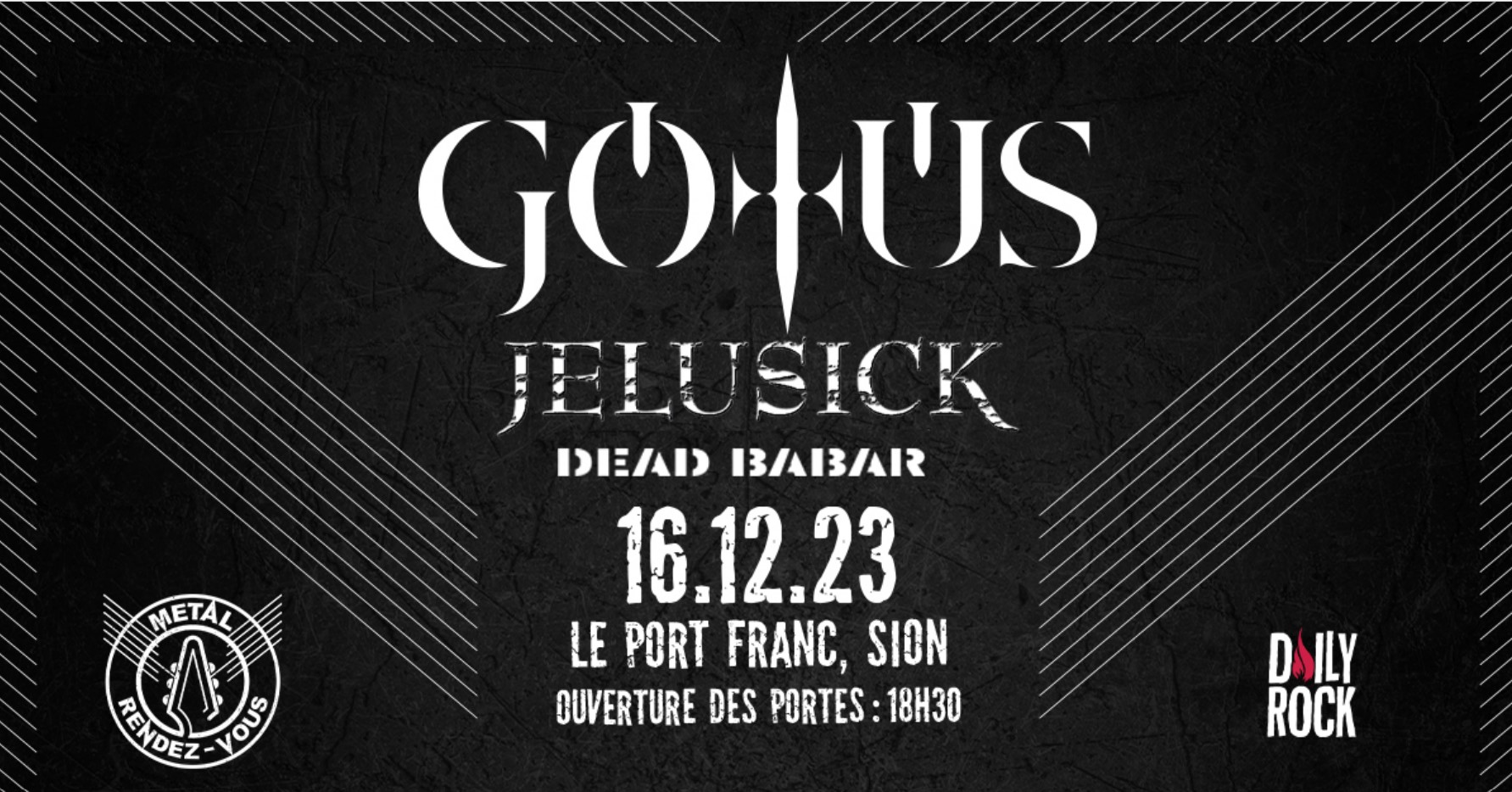 Le Port Franc de Sion sera à la fête le samedi 16 décembre avec Gotus, Jelusick et Dead Babar. Du Hard Rock avec des musiciens de très grande renommée, ayant foulé les grosses scènes internationales avec Krokus, Gotthard, Whitesnake et bien d’autres. On ajoutera une touche régionale et Dead Babar s’occupera de nous donner cette folle envie de s’éclater, de secouer tout ce qu’on peut, de faire la fête et d’afficher son plus beau sourire. Are you ready for the show !