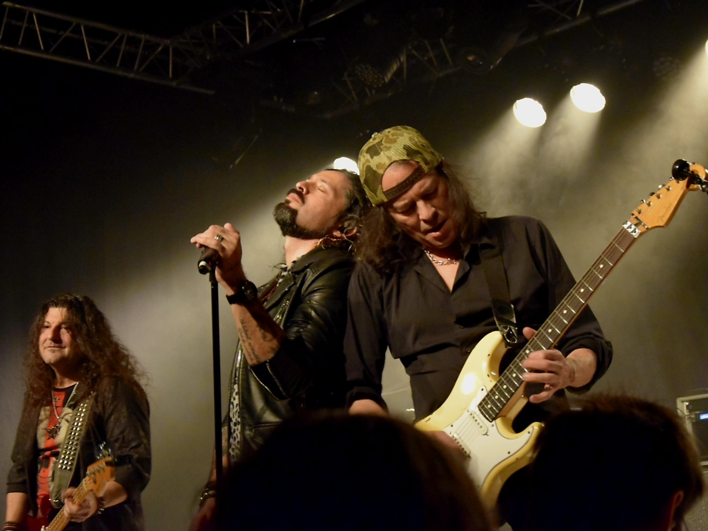 Place à Gotus, fan de Swiss Rock on les connaît déjà tous, car ils ont joué avec Gottahrd et Krokus… mais pas que… Asia, House of Lords, Cristall Ball, Rainbow, Michael Schenker, Storace et j’en passe, un vrai « All Stars Band » helvétique, initié en 2019 par Mandy Meyer (guitare) et Pat Aeby (batterie) qui voulaient redonner vie en live à plusieurs morceaux écrits par Mandy. Quelle bonne idée. Déjà impressionné lors de leur premier concert sur le Swiss Rock Cruise festival en octobre 2020, puis à Sion sous les Etoiles en 2022, leur venue à ce nouveau Metal Rendez-vous sédunois dans la petite salle du Port Franc donnait déjà l’eau à la bouche. Le Daily Rock a été invité dans les loges du band pour un entretien très sympathique avec Pat Aeby, Mandy Meyer et Tony Castell qui nous ont parlé de leur plaisir de rejouer ensemble et du bonheur de ressortir un nouveau disque le 19 janvier prochain qui sera vernis au Mühle Hunziken le 1er février 2024, encore un concert à ne pas rater. Le décor est donc posé et le show peut commencer : woaw ! déjà un son énorme … du vrai son venant de vrais amplis Marshall qui t’en mettent plein les oreilles d’entrée de jeu, ça fait plaisir. La section rythmique est solide et précise et le chanteur Ronnie Romero (déjà entendu dans cette salle avec CoreLeoni, en 2018) nous étale de toute sa classe, une voix magnifique qui dessert parfaitement les chansons de Mandy qui n’ont pas pris une ride. Que de talents réunis qui donnent tout avec un plaisir de jouer qui transpire et qui fait du bien, humilité et simplicité sont au rendez-vous, comme un prolongement du sympathique entretien du début. Magnifique soirée et belle ambiance qui se termine avec Dino (premier chanteur de Gotus) qui rejoint Ronnie sur scène pour un hommage au regretté Steve Lee, deux nouvelles voix hors normes qui se sont réunies pour un joli moment émouvant. Tout ce petit monde s’est retrouvé en backstage pour une excellente raclette et le fendant qui coule à flots, servis par l’équipe de Rockin’Valais. Le cinquième Metal Rendez-vous a vécu, à nouveau, une soirée fantastique, un merveilleux cadeau de Noël en avance et la promesse d’un futur rendez-vous pour les nombreux fans de rock de la région.