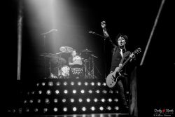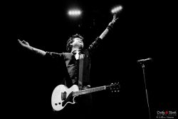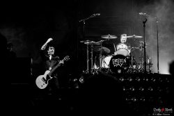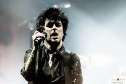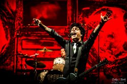 Les quelques clichés ci-après ont été saisis durant les deux premiers morceaux uniquement. Ils ne reflètent donc pas tout les évènements susmentionnés, mais tout de même un stage dive de la jeune spectatrice que Billie Joe Armstrong avait invitée à chanter.