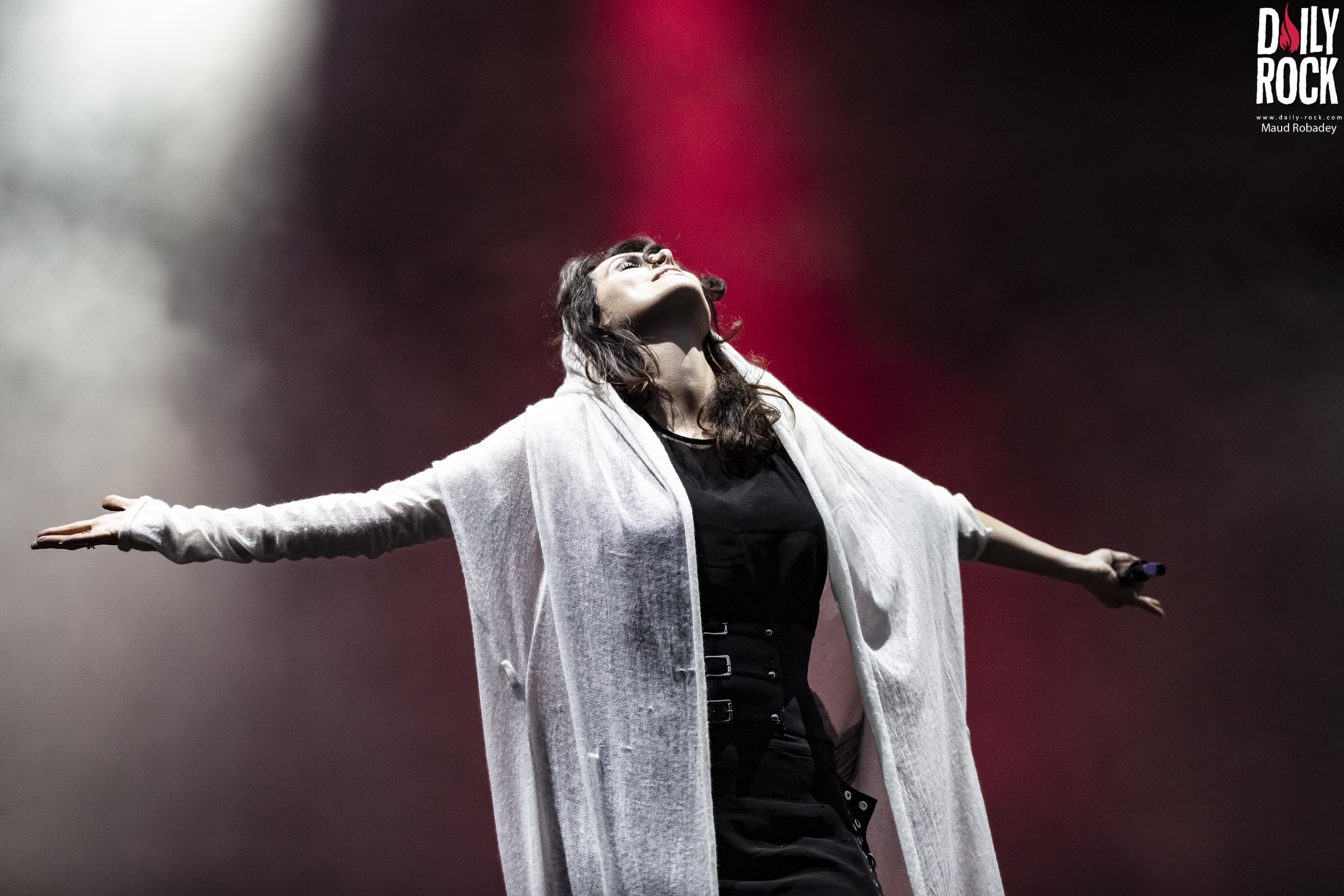 La musique ne reprendra qu’à 20h45 avec Within Temptation. Le groupe qui était apparemment venu avec plusieurs camions de matériel s’est contenté du strict minimum pour assurer le show. Dans le public, la pluie n’a pas affecté la bonne humeur des festivalier.ère.s : ça s’amuse dans la boue, ça fait splotch splotch dans les flaques et ça chante à tue-tête. Un spectacle presque plus intéressant que Within Temptation dont la chanteuse, Sharon den Adel, semble avoir un chat dans la gorge et avoir toutes les peines du monde à sortir sa voix. La petite scène rouvre ses portes avec Amaranthe qui offre un concert trop millimétré à notre goût. La soirée touche gentiment à sa fin.