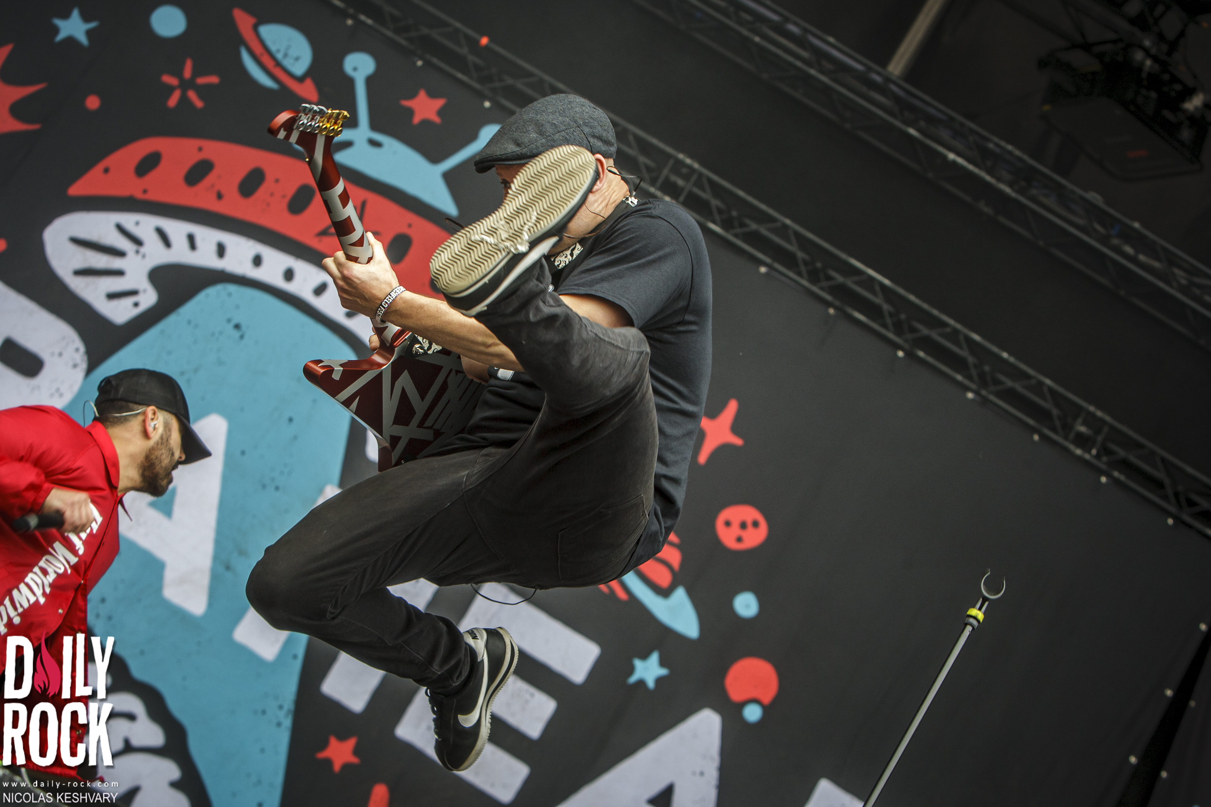 Sur la Jungfrau Stage, on part dans un monde à part avec Zebrahead. La pochette de leur dernier album, Brain Invaders, recouvre le fond de la scène de météores et autre soucoupe volante. Le groupe débarque même sur scène avec deux bonshommes verts qui les ont épaulés à mettre l’ambiance. Mention spéciale pour leur sortie en apothéose sur I Will Always Love You de Whitney Houston que tout le monde a repris en cœur. Un bon moment de rigolade !