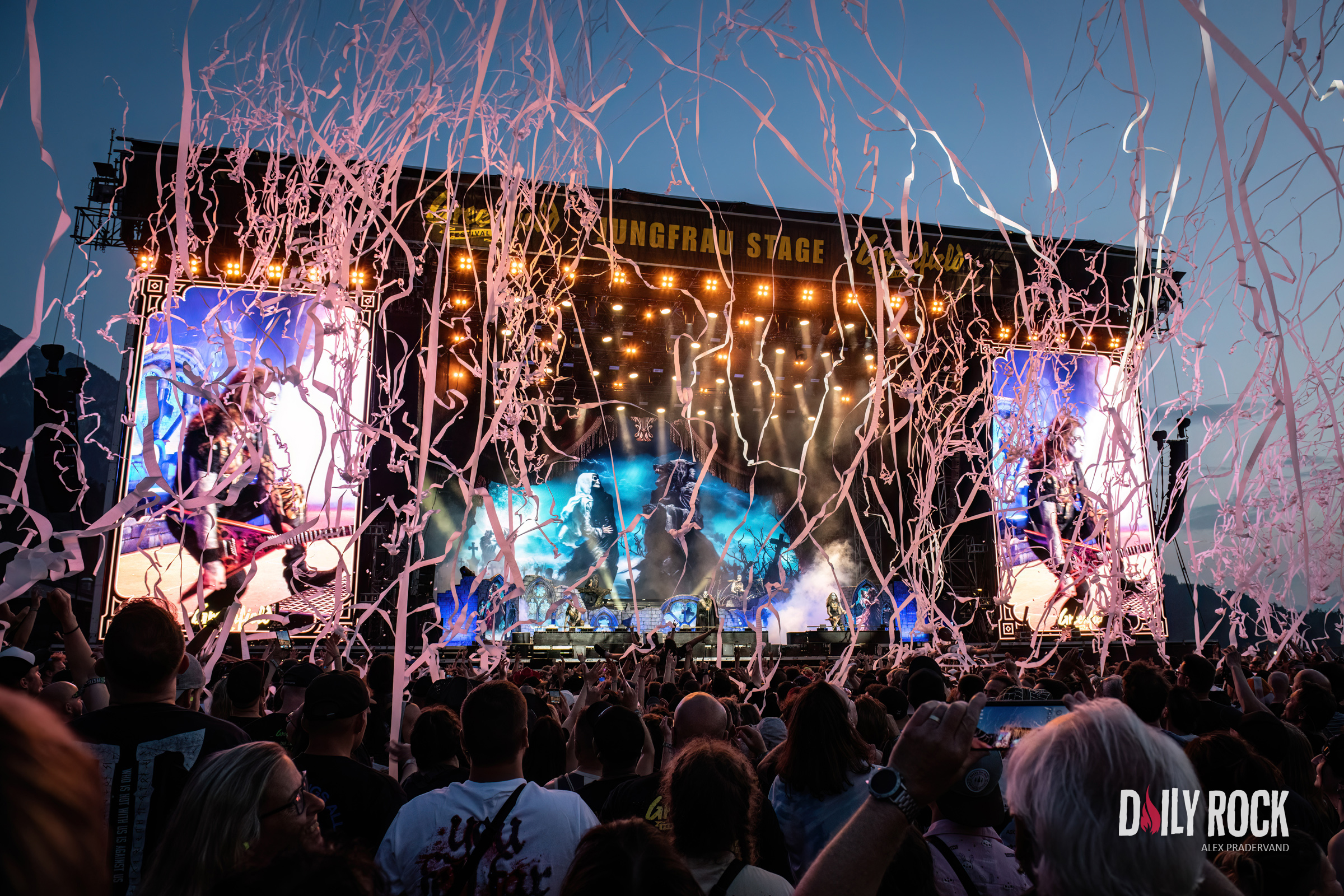 Dès l’ouverture des portes, le public est massé à l’entrée comme de coutume. Cette édition commence sous les traditionnelles notes de cor des alpes, et cette année la chaleur est tout aussi présente que le public dès l’ouverture des portes. On a quasiment l’impression que la tête d’affiche de ce soir est déjà sur scène. Les gens sont motivés et bien préparés. Cela ne peut qu’annoncer une édition de folie.