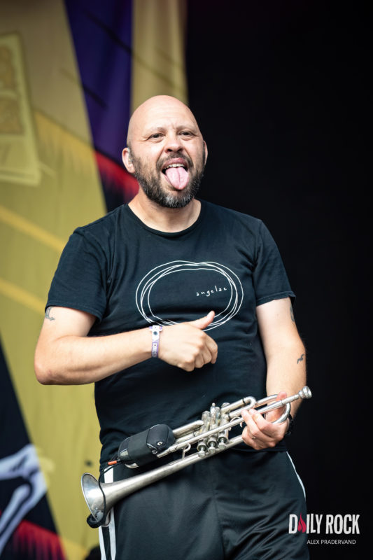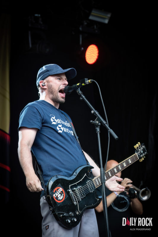 Histoire de continuer dans la mission rafraîchissante, on se prend une glace avant d’aller a l’Eiger stage voir les déjantés Talco. Une ambiance de folie, beaucoup de poussière et un groupe plus qu’heureux d’être là. Ça donne le sourire. Leur ska punk italien est parfait pour clore l’après midi en beauté. Heureusement pour nous, les nuages nous offrent un peu de fraîcheur. Il est encore tôt mais les slammeurs sont déjà au rendez-vous.