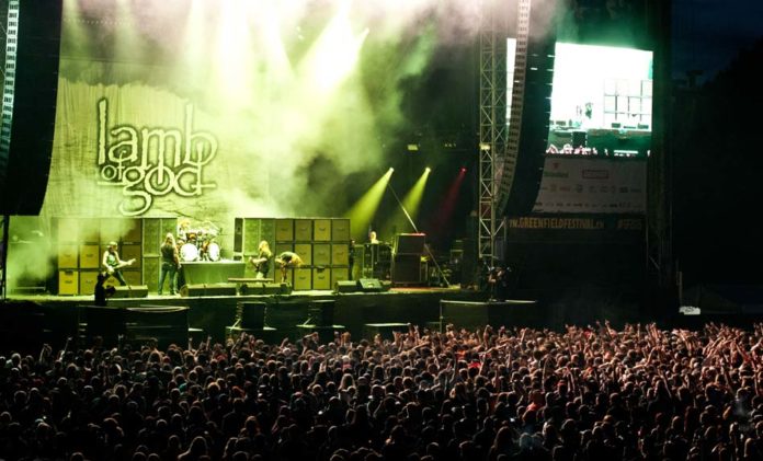 Notre pause repas nous empêchera de headbanger sur le hardcore de Every Time I Die, mais un gros concert se prépare pendant ce temps sur la grande scène. Les punks rockeurs de A Day To Remember sont visiblement très attendus et ne feront pas dans la dentelle. Dès les premières minutes du concert, la foule hurle, chante, et partage une complicité énorme avec le groupe, qui lui, donne tout malgré les quelques difficultés du chanteur apparemment liées aux problèmes de son. Une excellente surprise qui met de bonne humeur pour la suite. La nuit commence à tomber, le parterre se ressert, et ce sont à nouveau des américains qui foulent les planches. Le son de Lamb Of God est lourd, le cri de Randy raisonne et la double pédale est effrénée. Une belle baffe qui retombera vite tant l’ambiance un peu molle du public nous refroidit. Les compositions des metalleux sont tristement similaires et la fatigue commence à nous gagner. Direction la petite scène pour retrouver le groupe emocore du moment : Asking Alexandria. Pas mieux. Les anglais ont tout prévu pour le show et leur banc de groupies sont au rendez vous, mais ce n’est pas le cas de leurs compositions qui fleurent bon le romantisme adolescent recyclé sans aucune identité. On en pleure.