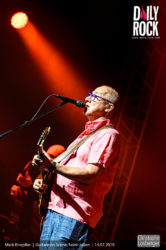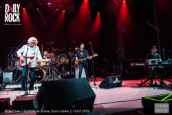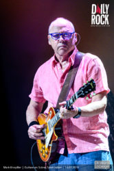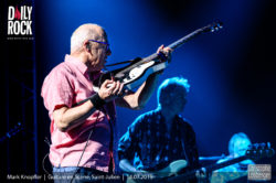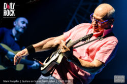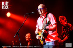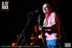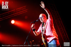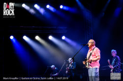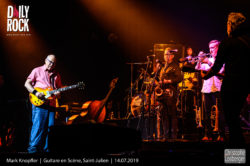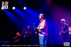 Le mot de fin revient à Mark Knopfler, qui clôt cette édition 2019 de Guitare en Scène. Un peu statique, sûrement ému par l’accueil, Monsieur Knopfler a su nous faire passer un super moment qui a ravivé quelques souvenirs dans les têtes du public pressé devant les barrières, ou alors un peu plus à l’aise sur le côté du chapiteau. Accompagné de son band aux talents multiples, tous virtuoses de plusieurs instruments, le concert se veut festif. Toujours proche de son public, il nous fait partager quelques anecdotes de sa vie bien remplie. Entre compos et reprises des Dire Straits, son rock blues et country nous démontre que Mark Knopfler reste bel et bien dans la cour des plus grands guitaristes du monde. Merci …