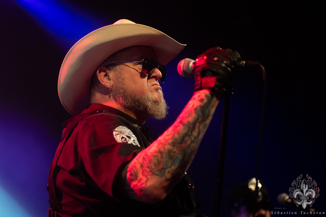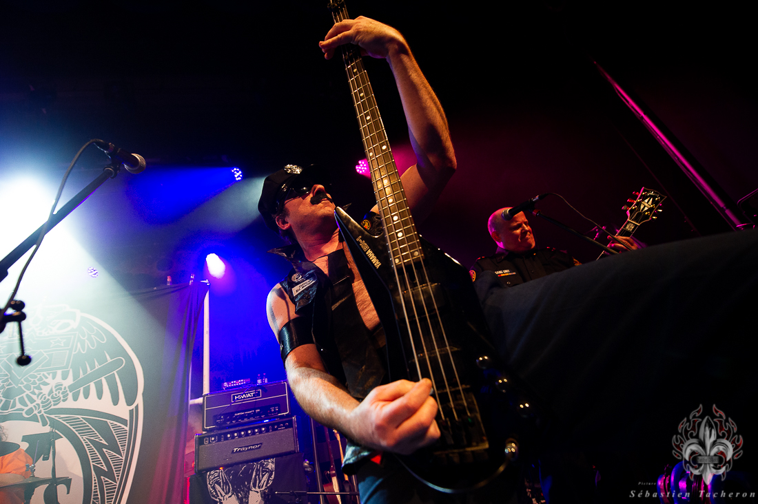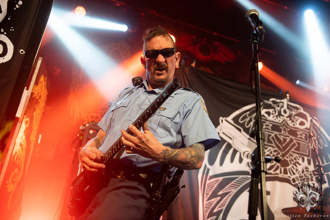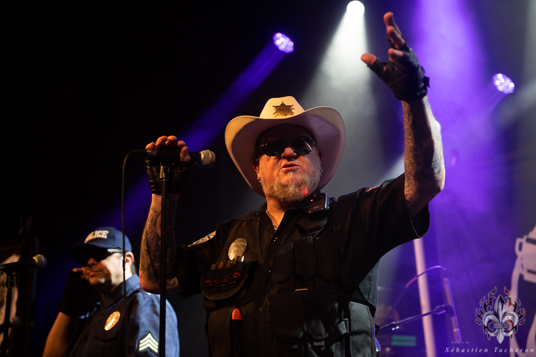 C’est le groupe X-Cops qui s’est chargé de mettre l’ambiance et de débuter cette soirée. En arrivant à la salle, je n’avais jamais entendu parler de ce groupe. Tous les musiciens sont habillés en policiers et le batteur, et un autre membre qui fait l’animation, sont quant à eux habillé en prisonnier. Leur musique est un mélange de punk hardcore mélangé au Métal qui fait du bien aux oreilles. Ça lance bien une soirée.