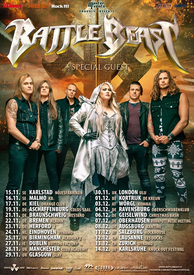 Actuellement en tournée européenne après avoir sorti le 22 mars dernier un nouvel album baptisé « No More Hollywood Endings », Battle Beast achèvera son année avec deux dates en Suisse : le 12 décembre au Docks de Lausanne et le 13 décembre au Dynamo de Zurich.
