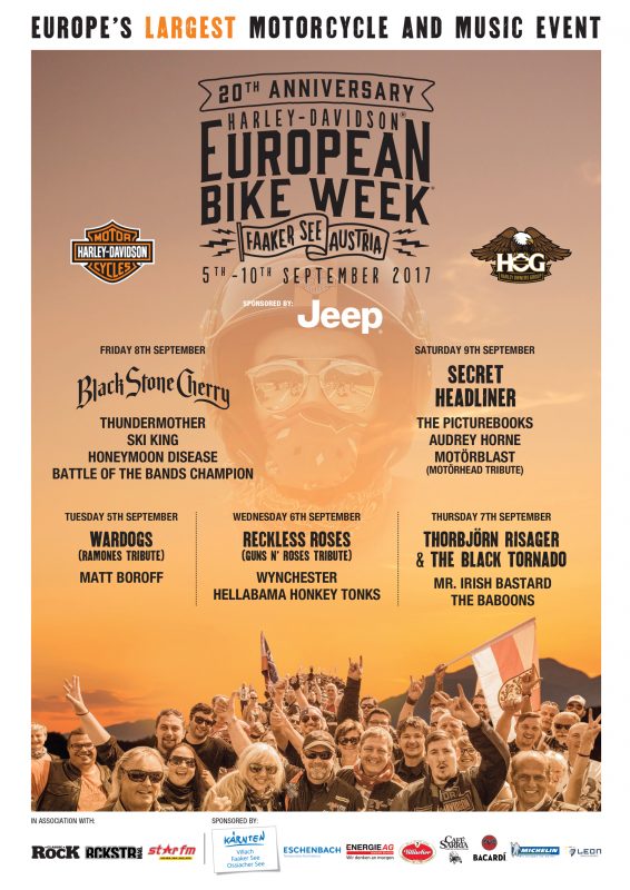 La vingtième édition de l’European Bike Week, qui se déroulera du 5 au 10 septembre 2017 autour du Lac d’Autriche, est sans conteste le plus grand événement de motos réunissant 120 000 visiteurs chaque année !