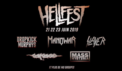 Cette 14ème édition se déroulera les 21, 22 et 23 juin 2019 à Clisson, et, cette fois, cinq groupes sont déjà annoncés : Carcass, Mass Hysteria, Dropkick Murphy, Slayer et Manowar… Cinq noms qui couvrent des courants très différents de ces musiques dites « extrêmes » que le Hellfest défend ardemment sur ses 6 scènes dont les spécificités n’ont d’égal que leur éclectisme.