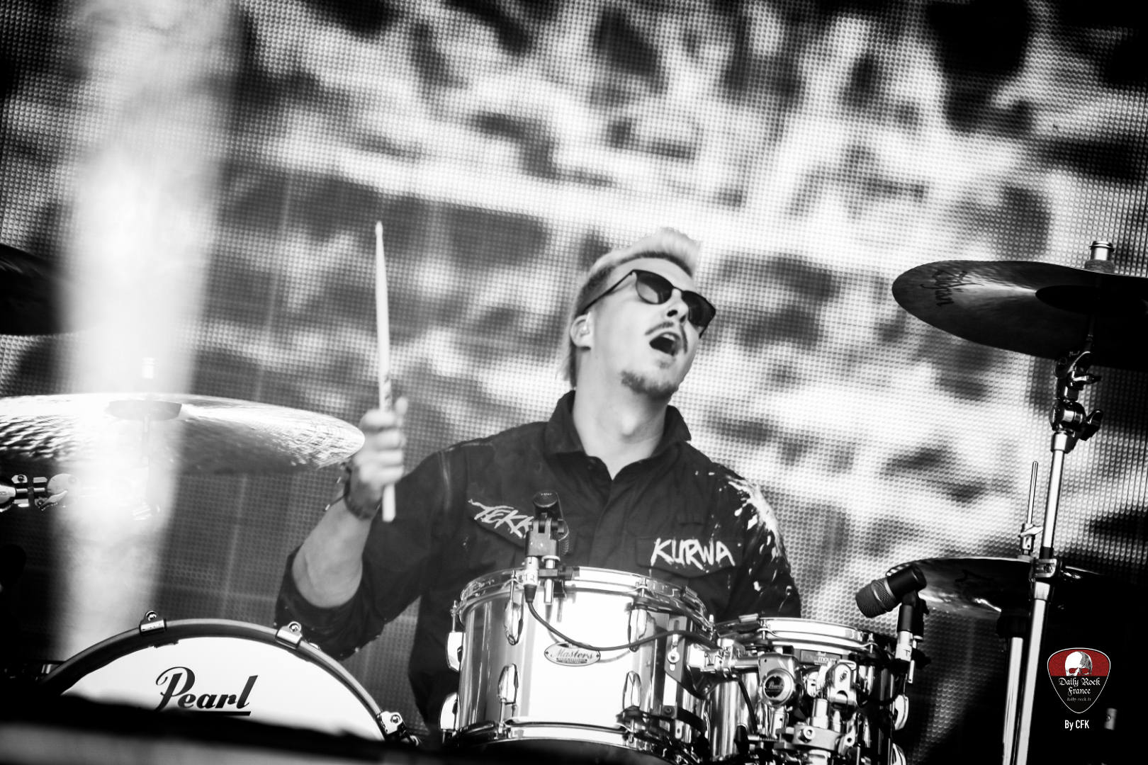 La température ne cesse de monter même après les averses du matin. Electric Callboys prend la suite sur la Mainstage et l’ambiance est déjà à son comble. Beaucoup de vrais fans qui arborent fièrement les tee-shirts du groupe. La foule s’échauffe encore un peu sur ‘Hypa hypa’ avant que le vrai coup d’envoi ne commence. Allez c’est parti, on prend le wagon du tekkno train ! Les hits du groupe s’enchainent, le tout agrémenté de lancés de confettis. Ambiance de folie, les slammeurs sont au rendez-vous, une vraie discothèque à ciel ouvert. Une petite pause changement de tenues, et c’est reparti de plus belle, tout le monde chante, danse, bref une vraie fiesta en Mainstage. Le groupe donne tout, partage avec générosité son enthousiasme débordant. Bien évidemment on n’échappe pas à l’incontournable ‘Pump it’, on redescends un peu avec ‘Mind-reader’ et on finit en beauté sur l’ultime hit ‘We got the moves’ enjolivé par les coupes au bol et doudoune blanche. Un show qui aura remué la foule et donner le gros smile à des milliers de personnes !