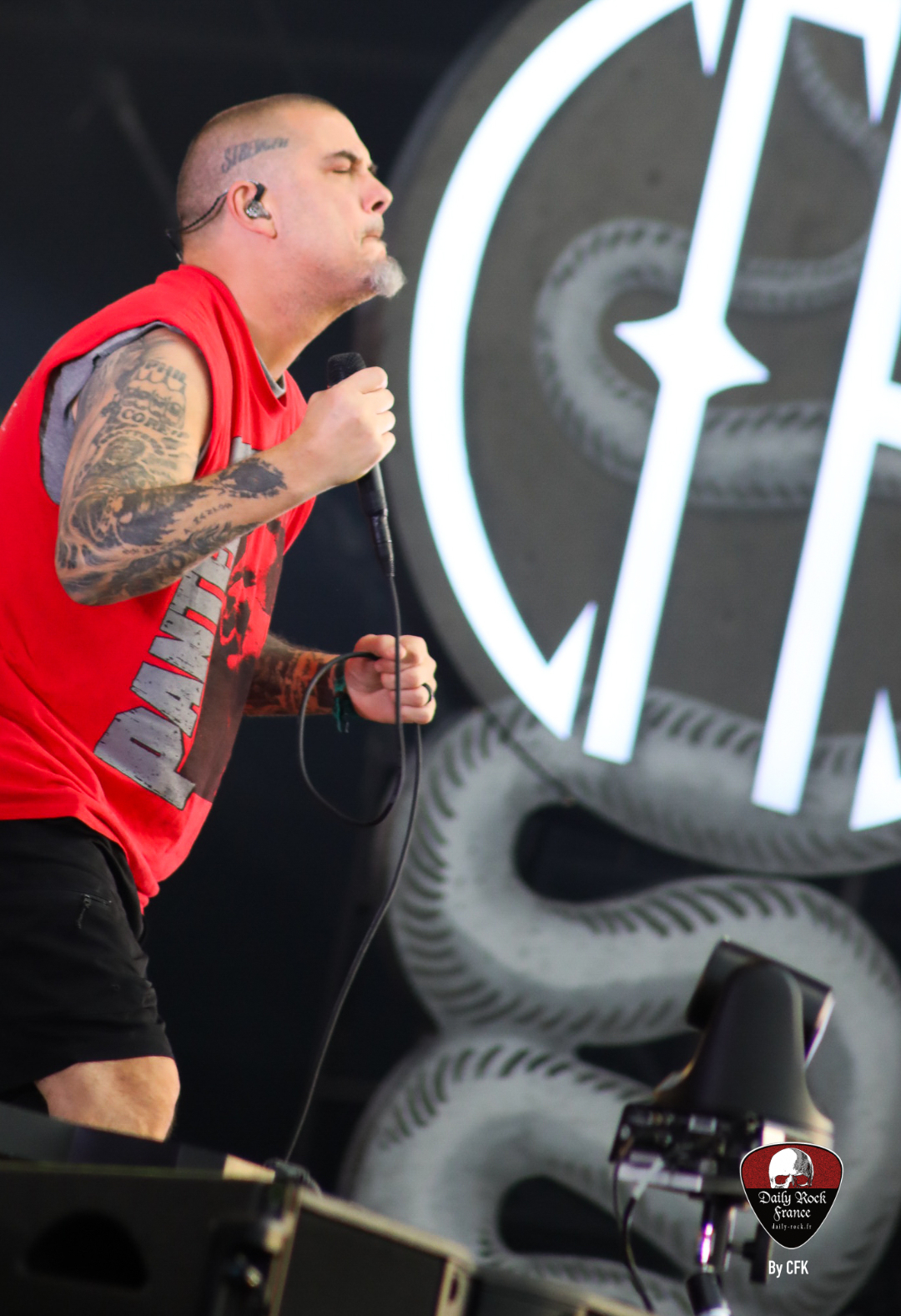 Mémorable ce sera aussi le parfait qualificatif pour le show suivant, celui du très attendu Pantera. Une reformation qui a beaucoup fait parler mais qui, au final, reste tellement incroyable qu’on ne peut s’empêcher d’aller voir, même si c’est simplement pour découvrir ce que ça donne sur scène. Oui ceux-là sont attendus au tournant. Eh bien, je dirais que le pari est réussi. Phil Anselmo semble avoir renfilé le costume des meilleures années du groupe. Même si la voix reste éraillée, on sent toute la bonne volonté pour envoyer la sauce. Et c’est soutenu par des musiciens hors-pair, que sont Zakk Wylde, Charlie Benante et Rex Brown, que le groupe nous scotche notamment avec ces tubes comme ‘Strength beyond Strength’, ‘ I’m broken’, ‘Fucking hostile’ et bien sûr ‘Walk’ ou ‘Cowboys from hell’. Un très beau moment d’émotion aussi avec des vidéos des deux comparses Dimebag Darrell et Vinnie Paul, sous forme d’un très bel hommage. Un retour très convainquant de Pantera, une bonne énergie live et un plaisir partagé !