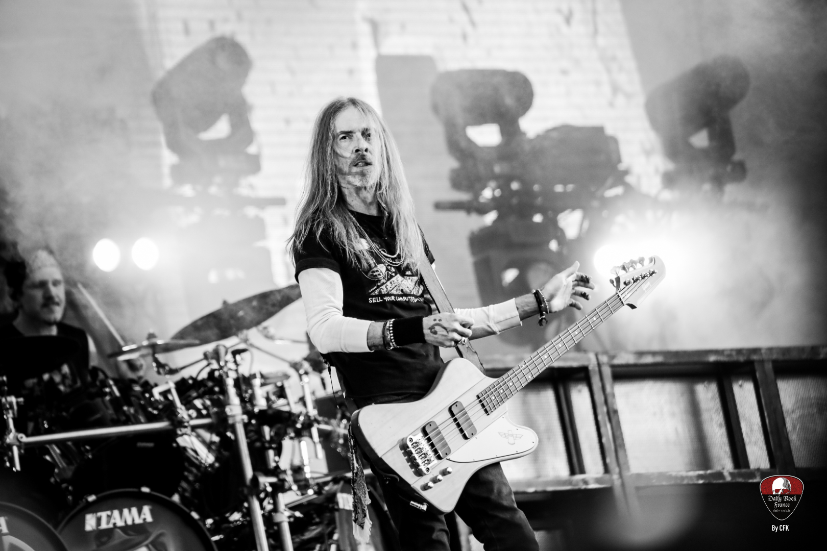 Changement de décor, changement d’ambiance. On embarque sur le drakkar de Amon Amarth pour une fête viking ! Les cornes à boire, les fourrures de toutes sortes, les kilts bref tout l’attirail est de sortie pour communier autour de ce groupe puissant, heavy mais mélodique à la fois. Un sacré mélange barbare et festif à la fois. Le public ne s’y trompe et chante avec le groupe des titres comme ‘Raven’s Flight’, ‘The way of Vikings‘ ou encore ‘Raise your Horns’. Un beau moment de convivialité puisque la foule semble avoir embarqué avec Amon Amarth.