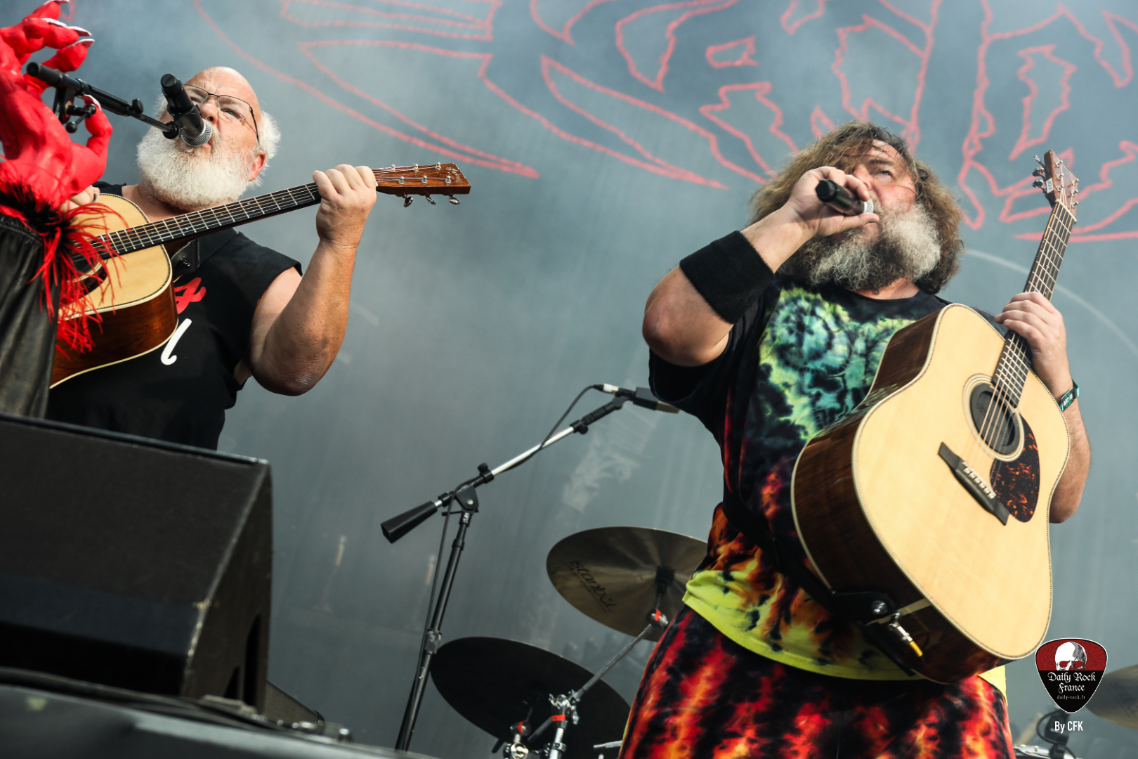 C’est au tour de Jack Black et son groupe Tenacious D d’envoyer son rock n’roll. Qui n’a jamais chanté ‘Master Exploder’ à tue-tête ou encore fait peur à ses collègues avec ‘Beezzeboss’ en soirée karaoké ? Il est donc temps d’un concert que personne n’oubliera d’aussi tôt puisqu’on sera pris entre la musique, le fou rire et la délectation. D’ailleurs les deux musiciens s’en donnent à cœur joie et n’ont pas perdu du poil de la bête. Au contraire ! Bien qu’un début en douceur avec ‘Kickapoo’, l’hystérie collective est déjà là. Le concert se transforme en karaoké géant et chacun y va de son sourire à son voisin ou de son air guitare. Sur scène l’incroyable duo nous assure un show entre improvisations musicales, touches théâtrales comme avec la venue du monstre pour ‘The metal’, et énergie débordante. Concernant la setlist de ce soir, c’est essentiellement des morceaux de ‘The Pick of destiny’, ‘Rize of the Phoenix’ et ‘Tenacious D’, complété par un beau cover de ‘Wicked Games’ ou de belles improvisations. On termine en beauté par le très romantique ‘Fuck her gently’ pour la touche loufoque. Un super concert, juste mémorable !