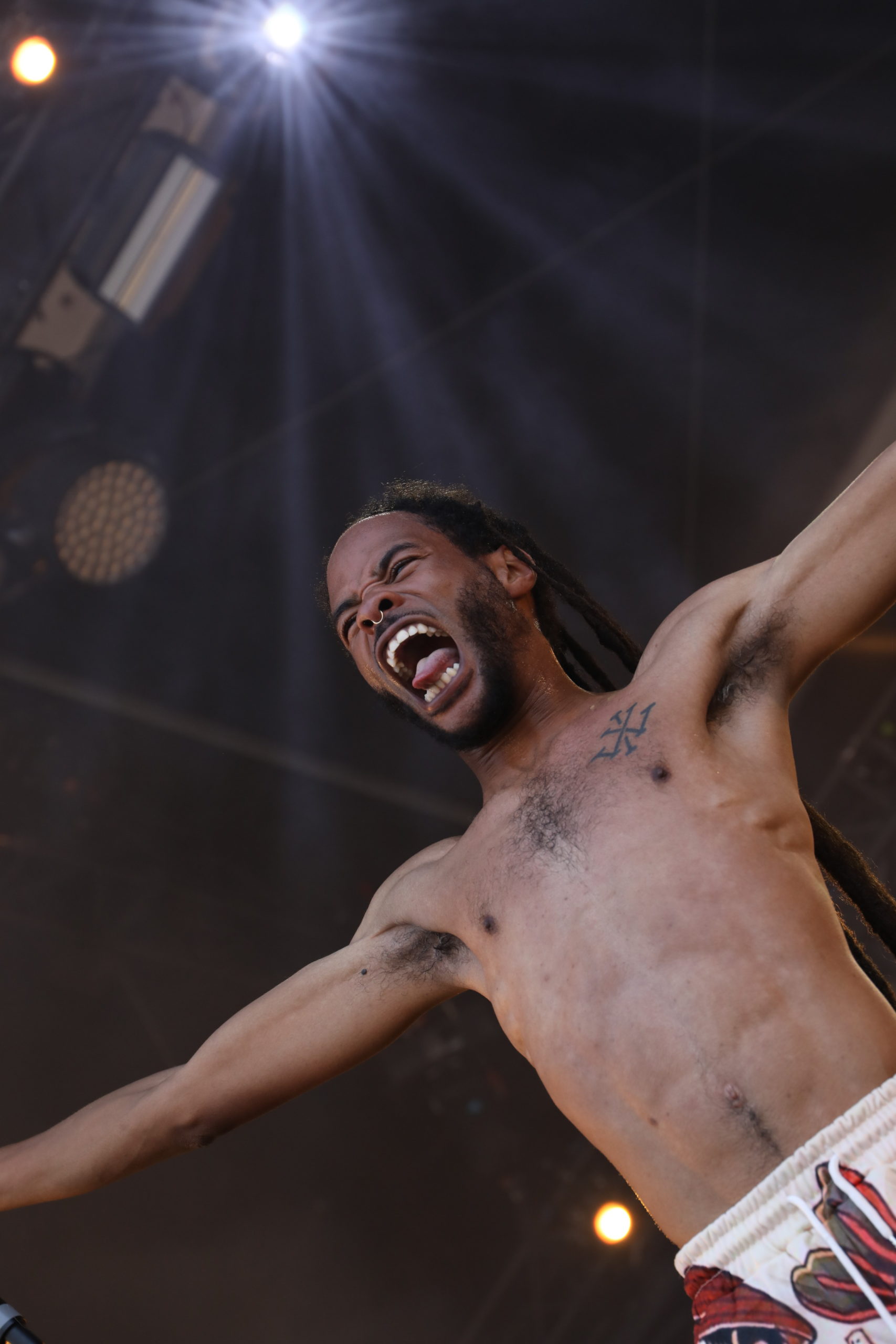 C’est à la Warzone que nous continuons notre journée avec Dropout Kings. Malgré une chaleur de plus en plus intense, le public reste massé devant la scène. Les Américains sont clairement là pour déverser toute leur énergie. Ils s’agitent dans tous les sens, occupent l’espace, descendent dans le public et organisent des circle pits bien énervés. Niveau musical, ça change ! C’est du nu metal. Pas au goût de tous, certes, mais l’ambiance est indéniable.