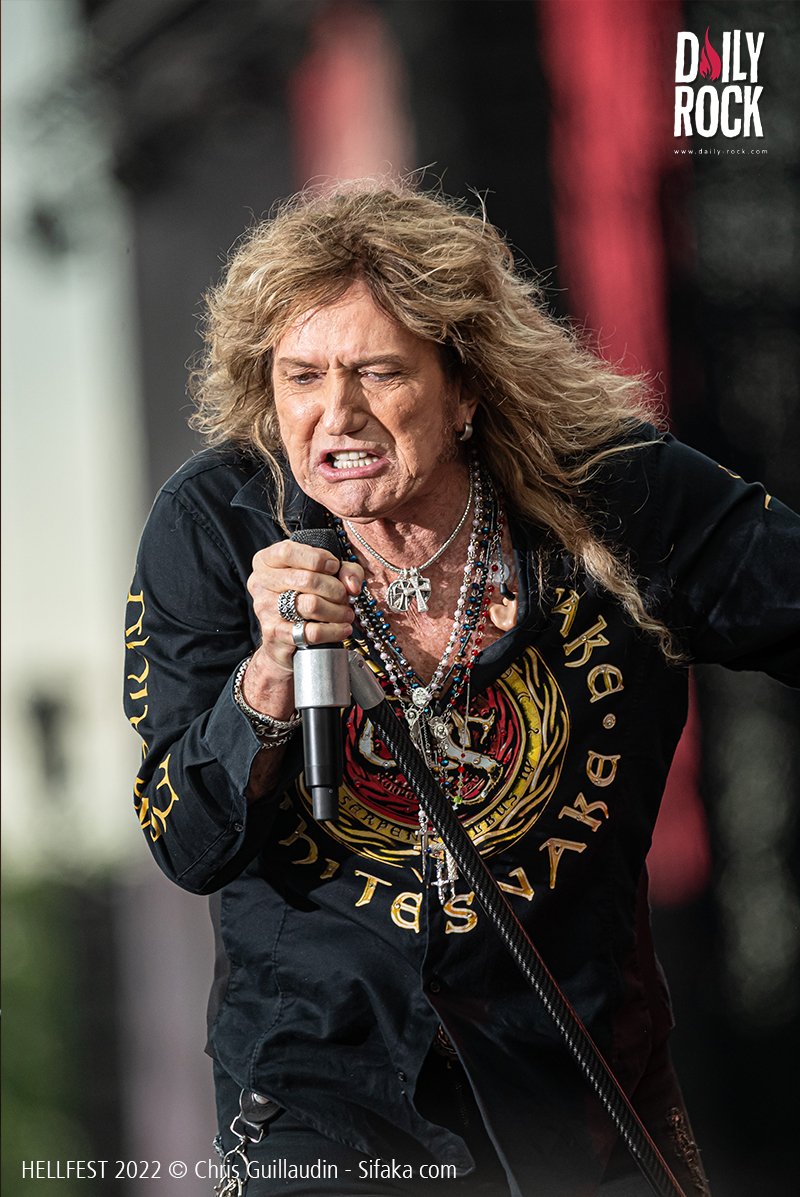 Whitesnake maintenant. On continue sur la lignée nostalgique du Hard Rock des années 80. Pas toujours de la meilleure des manières car les artistes prennent de l’âge, des rides et surtout une claque niveau vocal. Un David Coverdale qui a du mal à envoyer la sauce. L’énergie est bel et bien là mais la voix ne suit plus. Heureusement d’excellents musiciens l’accompagnent et on soulignera la présence d’une jeune bassiste extrêmement talentueuse qui a donné un peu de fraicheur et de jeunesse dans ce groupe ‘Oldschool’. Les titres que tout le monde attendait sont là, mais ont été surtout joués à la dernière demi-heure. Le show a vraiment démarré à ce moment-là avec le mythique « IS THIS LOVE » et enchainé avec ‘Here I go again’ et ‘Still of the night ».
