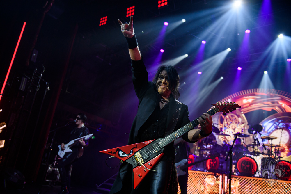 La soirée a débuté en force avec Beast In Black, qui a livré une performance d’une efficacité redoutable. Le groupe a immédiatement conquis l’Olympia avec son mélange de Power Metal et de sonorités synth-wave, porté par un Yannis Papadopoulos impérial. Sa capacité à alterner entre puissance et notes suraiguës sur des titres comme Blind and Frozen ou One Night in Tokyo a parfaitement fait monter la température. Une mise en bouche de haute qualité qui a idéalement préparé le terrain pour la suite de la soirée.