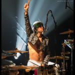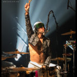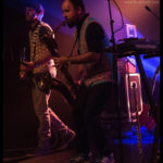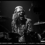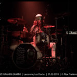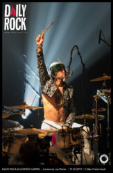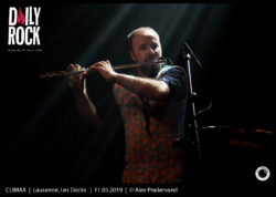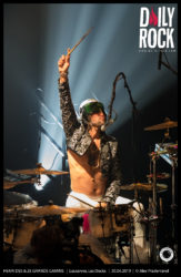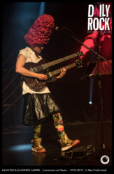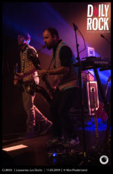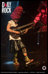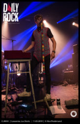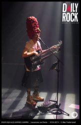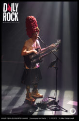 En première partie, le ton était déjà donné avec le groupe Climax. Autoproclamés stars dans la région de Chavornay, adulés comme des dieux dans les foires agricoles et les fêtes de jeunesse du nord vaudois, les musiciens de Climax semblaient très heureux de se produire devant le public des Docks, qui jusque-là, pour des raisons difficilement compréhensibles, n’avait pas encore succombé à leur charme. Une bonne heure de déconnade par une joyeuse troupe vêtue de seyants justaucorps faits maison. Dommage que l’on ne pouvait pas en acheter des pareils au stand du merchandising. Entre deux morceaux, on croit comprendre que la plupart des musiciens sont profs dans le civil et je me dit que les profs de mon époque avaient l’air bien moins drôle. Les textes sont bien trouvés, que ce soit « Love » ou « Jean-Claude Foulspid ». Et en plus, ils jouent un garage rock bien groovy en passant aisément d’un instrument à l’autre. Chapeau les gars. Par contre, je suggère de mettre un minimum de lumière si vous voulez vous avoir des photos live (cela dit si je devais jouer en public dans un justaucorps en laine, je préférerais moi aussi l’obscurité).