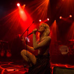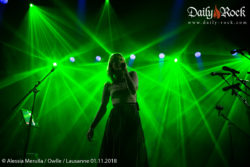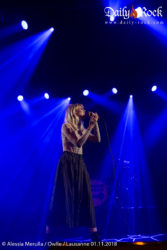 Owlle, seule sur scène, a démarré en douceur avec une série de titres mi dépressifs, mi rythmés. Une énorme collection de micros (dont on n’a pas complétement saisi l’usage) ornaient un côté de la scène, se tenant devant elle tels les branches d’un arbre enchanté. Le public semble adhérer à l’univers de la française, c’est pari gagné pour elle !