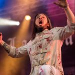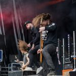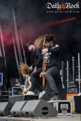 18h30, la grande scène arbore désormais une immense banderole : Betraying the Martyrs. La première chose qui frappe, c’est l’âge des musiciens. La plupart semblent ne pas avoir trente ans, mais la qualité musicale fait pâlir. Tout est dedans, les breaks, les changements de rythmes, les harmonies vocales, les solos de grattes et j’en passe. C’est une formation surexcitée qui parcourt la scène de long en large en posant une ambiance hors du commun, malgré le soleil encore très présent. On apprend également que c’est l’anniversaire du lead guitariste. Le groupe chante, le public aussi et le gratteux reçoit une bonne rasade de vodka en guise de cadeau. L’ambiance est très chaleureuse. Ils délivrent, après ça, un show très travaillé, témoin d’une réelle cohésion de groupe et d’un professionnalisme plus que respectable. Nous ne pouvons que souhaiter une longue vie à ce beau projet.