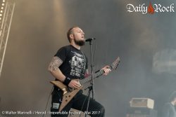 Les Italiens de Lacuna Coil s’emparent de la grande scène à 20h45. C’est avec le titre ‘Ultima Ratio’ que les Milanais ouvrent le bal. Disons-le d’entrée, le combo fera la part belle à sa dernière galette ‘Delirium’, avec pas moins de sept titres interprétés. On sent les années de scène. C’est rodé et très propre. Finalement, peu de place à l’improvisation. La voix toute en réverbe de Cristina Scabbia fait écho à la rage et aux hurlements d’Andrea Ferro, pour un rendu tonitruant. Diego Cavalotti, leur nouveau guitariste, se fond dans la rythmique basse/batterie, tout en sachant, quand il le faut, nous sortir un solo efficace et très bien senti. Cristina nous prie de nous avancer, car elle veut pouvoir nous sentir. (Est-ce vraiment une bonne idée, après une journée de festival ?). Il nous dégomme par surprise une reprise inattendue. ‘Enjoy The silence’ de Depeche Mode. Hey oui mes Trolls, on ne s’y attendait pas non plus. Mais cette cover a le mérite de bien faire bouger la fosse. Ils nous quitteront un peu plus tard, avec ce qui est à mon sens le titre phare du dernier album, ‘The House of Shame’. Belle prestation des Lombards qui firent l’unanimité.