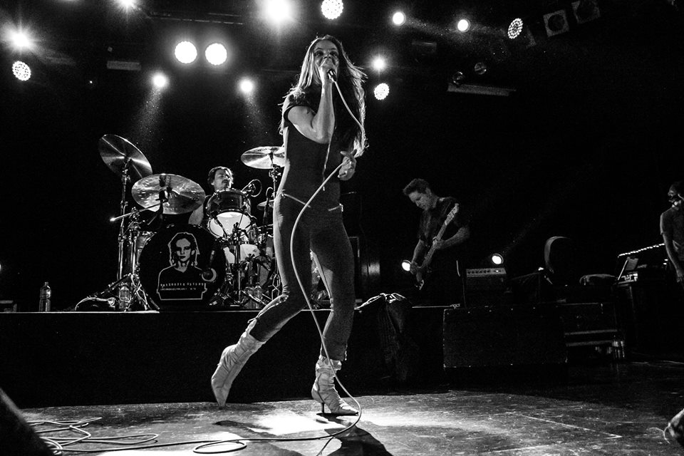 La salle fribourgeoise était à demi pleine pour le retour après cinq ans de l’actrice-chanteuse complètement barrée. La première partie était assurée par le duo John Dear (ex-Zorg) qui a fait le job en réunissant une foule encore un peu éparpillée. Leur rock 70’s fumeux parsemé de gros riffs bien dodus qui font dodeliner de la tête a su éveiller les rockeurs encore endormis malgré des instrumentaux longuets. Guillaume a le sens du show du vieux routard à qui on ne la fait plus et Catia s’est appliquée derrière sa batterie, instrument qu’elle joue depuis peu. Son jeu est d’ailleurs encore un poil scolaire, mais on apprécie l’effort.