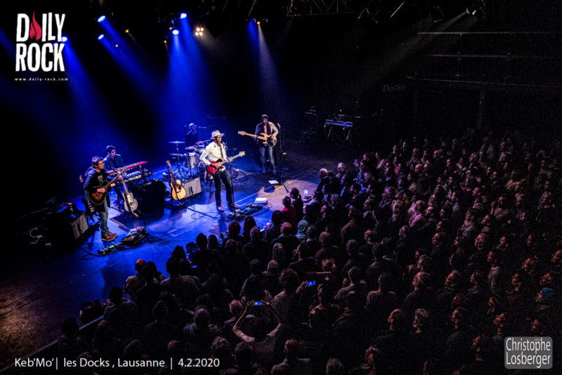 Le concert de Keb’Mo’ aux Docks à Lausanne était l’occasion de la divulgation du programme du Blues Rules Crissier Festival, que nous avons mentionné plus tôt dans nos pages, partenaire des Docks pour cette soirée de blues. Keb’Mo’ est une véritable légende du Blues et il nous tardait de découvrir son concert aux Docks, après avoir été complètement subjugué par son spectacle 100% acoustique l’été dernier à Genève. Le bluesman domicilié au Tennessee nous a partagé son dernier album « Oklahoma », qui a reçu récemment le grammy award de meilleur disque blues, avec d’autres titres plus anciens. Keb’Mo sait nous régaler aussi bien en blues électrique avec tout son groupe qu’en acoustique avec des chansons tendres et poignantes, contant les drames sociaux ou les problèmes de l’immigration, sans oublier quelques chansons drôles. Bref, un excellent show très équilibré.
